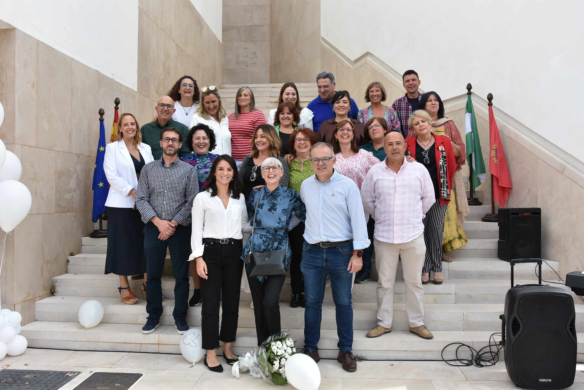“María Jesús García Sánchez” es ya el nombre del Centro Municipal de Bienestar Social de nuestra ciudad, ubicado en la Plaza de la Cava Alta. Así lo decidió por unanimidad el pleno ordinario de febrero de este mismo año y así se materializaba, con un sencillo acto, en la mañana del lunes 16 de octubre. Tras unas palabras de la concejala de Servicios Sociales, Priscila Martínez, y de tres trabajadoras de este departamento, la que fuera trabajadora social del Ayuntamiento bastetano durante 33 años, jubilada el 24 de diciembre de 2018, descubrió emocionada la placa en la que se indica la nueva denominación de este emblemático edificio. María Jesús García se dirigió después a los reunidos, entre los que se encontraban todos sus ex compañeros de la concejalía y muchos funcionarios municipales en general, miembros de la corporación, amigos, “alumnas” de sus clases de yoga, y familiares, para agradecerles su presencia y su reconocimiento. El alcalde, Pedro J. Ramos, terminó las intervenciones reconociendo que “no podía haber un nombre más apropiado para este centro”. Aprovechando las escaleras que suben a la alcazaba junto a la puerta del edificio, la protagonista compartió una foto con los trabajadores de los Servicios Sociales del Ayuntamiento y otra con las personas que habían participado en el acto. En el sentir de todos, una acción justa, adecuada y que, además, se realiza en vida de la homenajeada. Como tiene que ser…