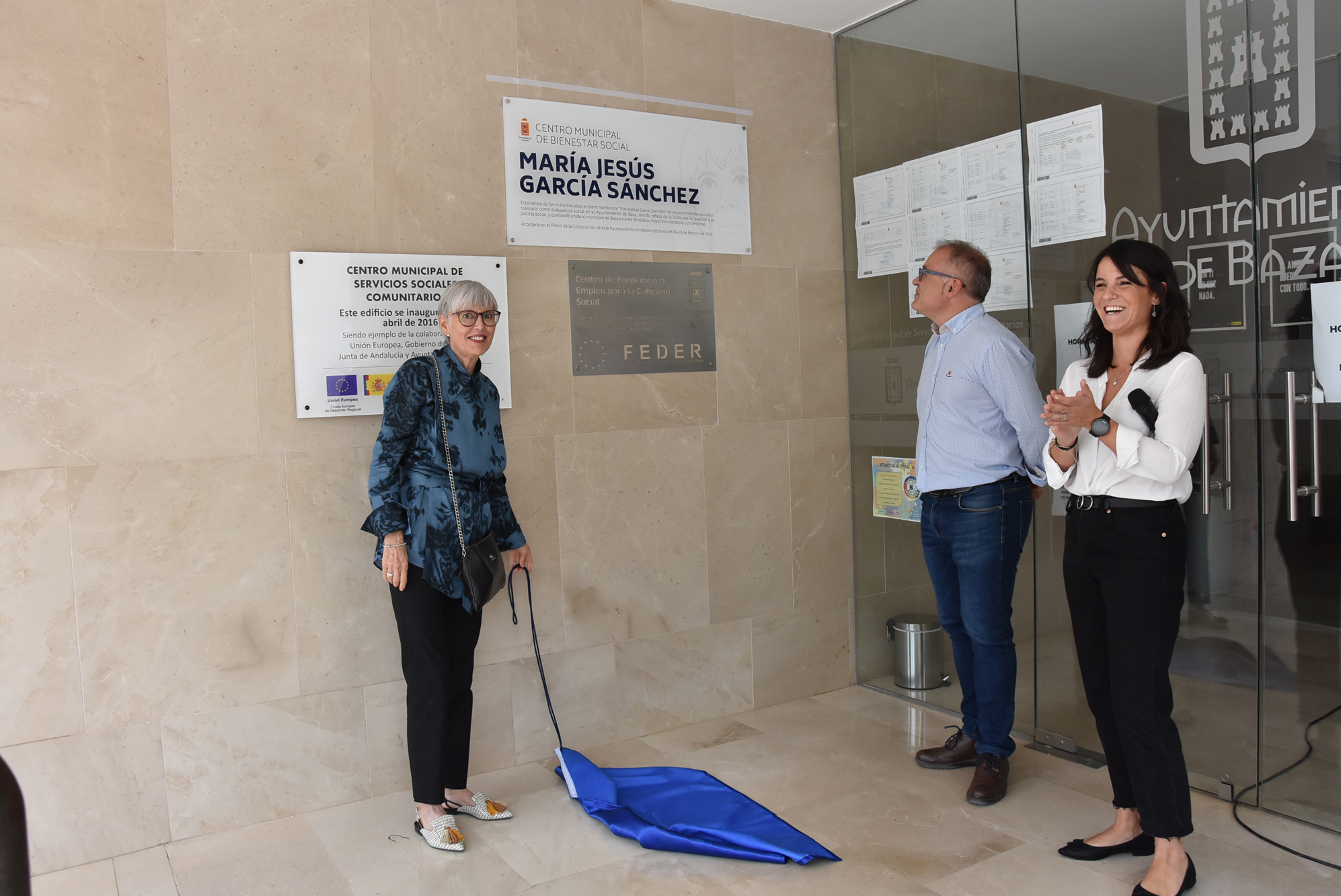 Con las fotos que servirán de recordatorio del acto, que contó con la ambientación musical de la Escuela Municipal de Música, terminó este momento que debemos considerar histórico y entrañable. Señalar por último la leyenda que aparece en la placa situada en la misma entrada al edificio: “Este Centro de Servicios Sociales recibe el nombre de “María Jesús García Sánchez” en reconocimiento a su labor realizada como trabajadora social en el Ayuntamiento de Baza, siendo reflejo de la lucha por la igualdad y la justicia social, y quedando unida al municipio de Baza a través de toda su trayectoria personal y profesional. Acordado por el pleno de la corporación de este Ayuntamiento en sesión celebrada el 23 de febrero de 2023”. A lo que habría que añadir que fue por unanimidad.