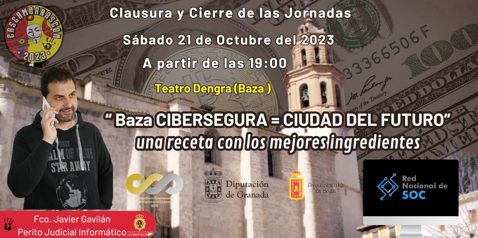 19:00. Cierre de las Jornadas “Baza Cibersegura=Ciudad del Futuro”. La receta con los mejores ingredientes. Francisco Javier Gavilán, Técnico Superior de Administración y Sistemas, Perito Judicial Informático y apasionado de la ciberseguridad.