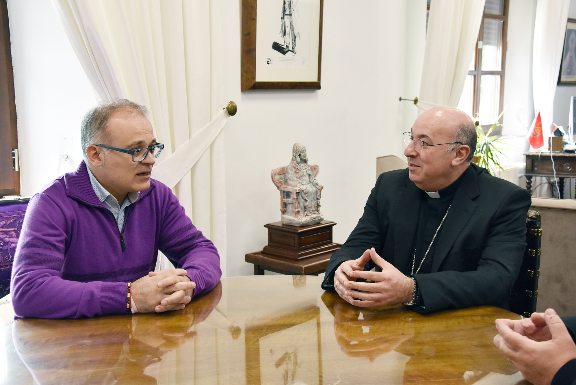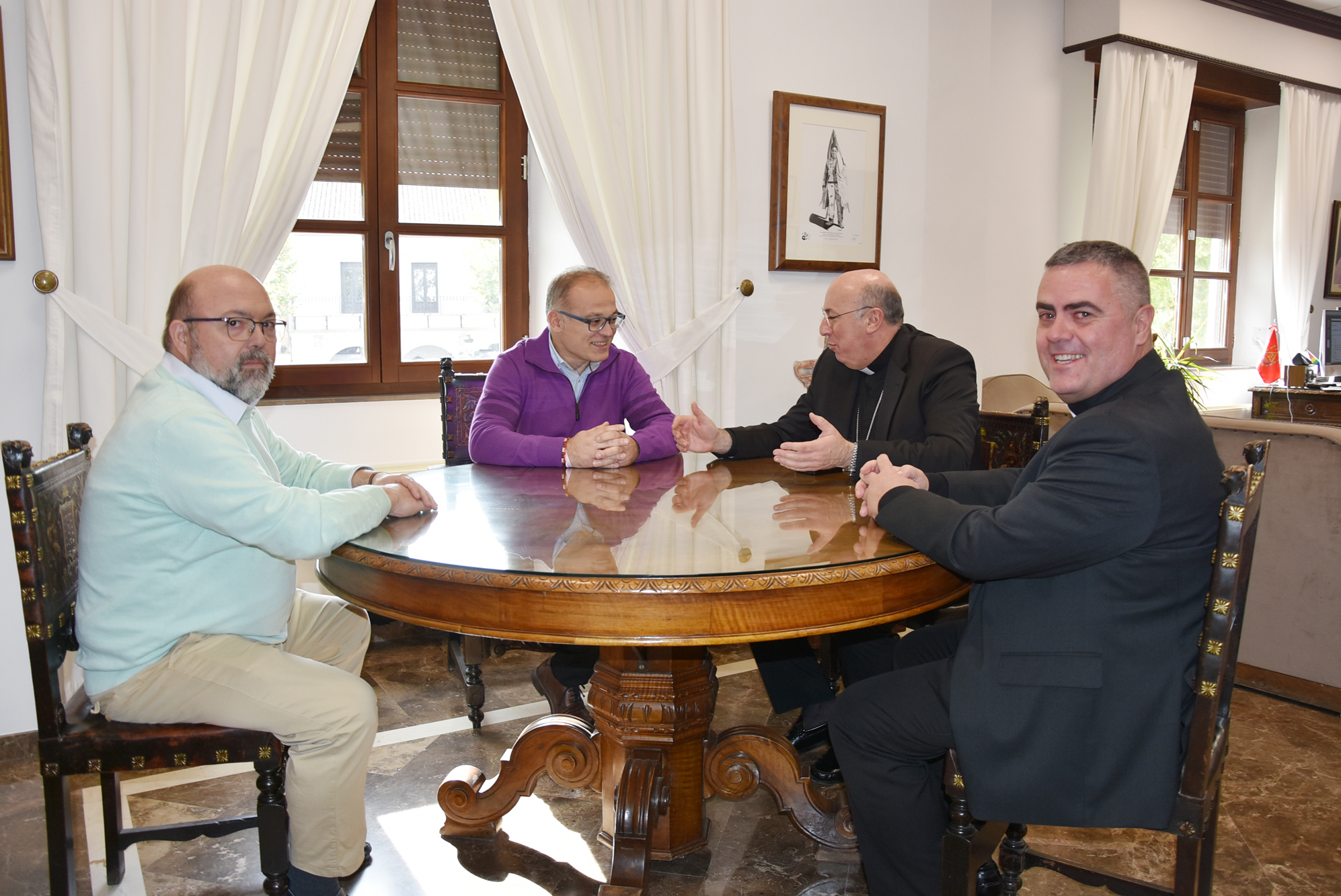 Numerosos asuntos se pusieron sobre la mesa durante la conversación, muestra de las excelentes relaciones de colaboración y respeto que mantienen ambas instituciones. Aunque ni se alcanzó ni se cerró ningún acuerdo, Ayuntamiento de Baza y Obispado mostraron su buena disposición a concretar en breve algunos aspectos que requieren renovación o consolidación. Es el caso del centro sociocultural Santo Domingo, un espacio que es propiedad de la Diócesis pero que viene gestionando el gobierno municipal desde su rehabilitación y que seguirá manteniéndose así por expreso deseo de las dos partes. Los representantes del gobierno municipal se interesaron por determinados asuntos relacionados con el patrimonio eclesiástico en la ciudad, caso de la fachada de la iglesia de los Dolores, confirmándose por parte del Obispo que la rehabilitación de ese espacio ya estaba en manos de Cultura para la obtención de los permisos.