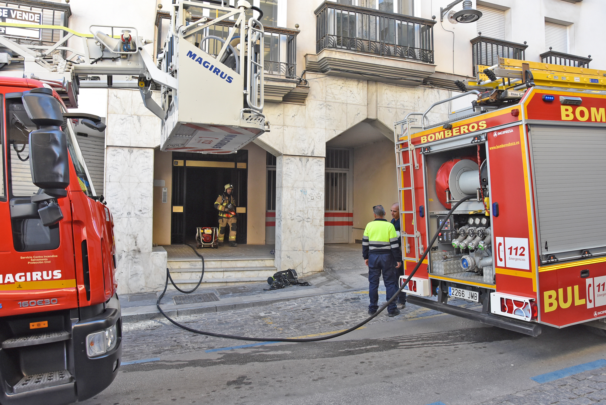A las 12:24 horas de hoy, viernes 17 de noviembre, se recibía en el parque de bomberos de Baza el aviso de un incendio en el número 5 de la calle Alamillos. Hasta allí se desplazaban rápidamente dos bombas urbanas ligeras y el camión autoescala para poder rescatar a algunos vecinos que reclamaban ayuda por los balcones.
