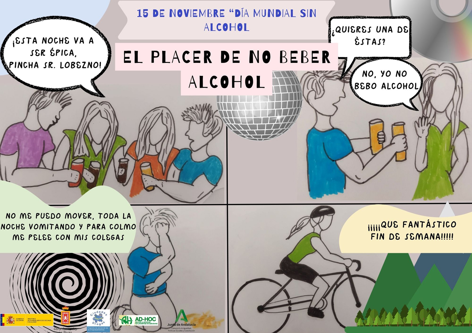 Aquel 15 de noviembre se aprovechó también para presentar la campaña que se va a realizar en las próximas semanas con motivo del Día Mundial Sin Alcohol, que se celebraba precisamente ese día, impulsada desde la Organización Mundial de la Salud (OMS). El objetivo es dar a conocer entre la población la problemática sanitaria y social que representa el consumo de alcohol. Con tal motivo, desde el Programa Ciudades ante las Drogas del área de Bienestar Social del Ayuntamiento, bajo el lema “El placer de no beber alcohol”, se quiere informar de los riesgos que tiene el consumo de alcohol en jóvenes. Esta información se ofrecerá a través de los espacios de prevención de los centros de educación secundaria, Espacio Joven, Servicios Sociales, Centro Sociocultural y Escuelas deportivas municipales.