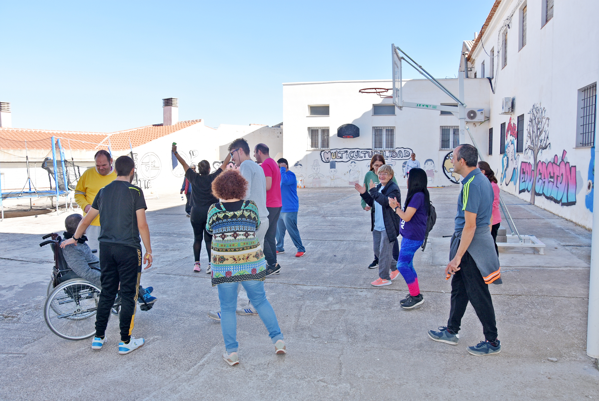 El viernes, 17 de noviembre, la actividad se trasladó al edificio del Plan Integral del Ángel, donde el movimiento de personas de un lado a otro fue frenético. Se desarrolló una jornada lúdico-deportiva inclusiva, aderezada con desayuno saludable, en la que participaron representantes de varias asociaciones de la ciudad: Jabalcón, Afemagra, Ad Hoc, Cruz Roja… Entre otras actividades hubo que buscar pistas para llegar a definir y comprender mejor la participación.