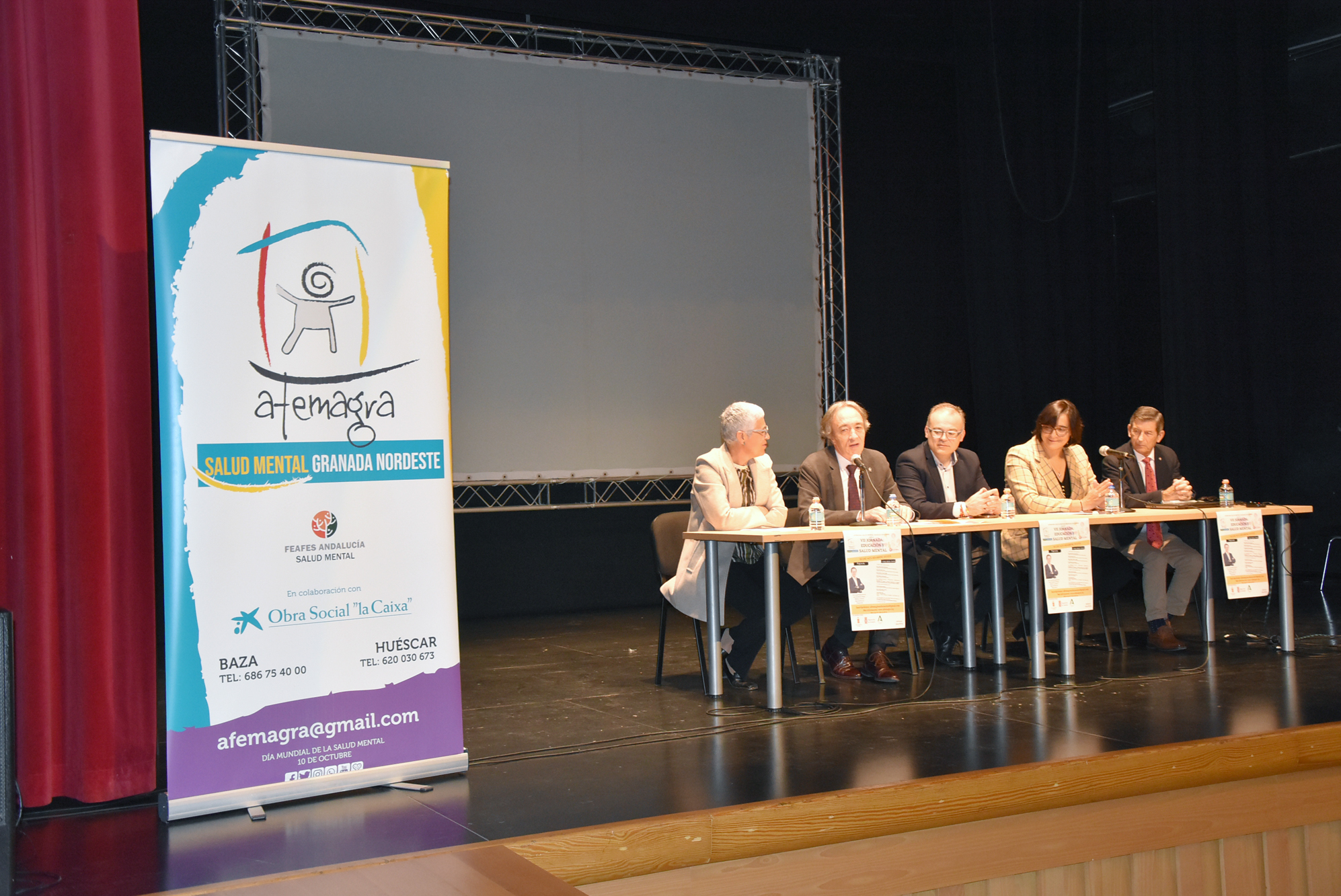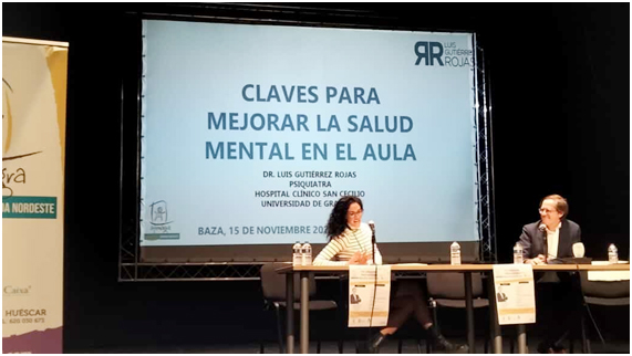 El miércoles, 15 de noviembre, el protagonismo fue para la VII Jornada: Educación y Salud Mental que organizó la asociación Afemagra Salud Mental Granada Nordeste, una iniciativa que obtuvo un notable éxito de participación y de presencia de entidades sociales, tanto públicas como privadas, interesadas en la relación que puede haber entre la enseñanza y la salud mental. De hecho, la cita contó en su inauguración con la presencia de los delegados territoriales de Salud, Indalecio Sánchez-Montesinos, y de Desarrollo Educativo, María José Martín, así como con el alcalde de Baza, Pedro J. Ramos. A partir de ahí, varias mesas de trabajo con intervenciones de técnicos en Orientación Educativa, en Psicología Clínica, en Tratamiento Familiar, etc.; con las emotivas experiencias de usuarios de este tipo de servicios; y con las vivencias y el día a día de asociaciones y familias que tratan en su día a día con casos concretos. Por el escenario del salón Ideal pasaron a lo largo del día asociaciones de madres y padres, la madre de un usuario de la asociación Jabalcón, la directora de Ad-Hoc, usuarias de Afemagra, etc. etc. Uno de los asuntos tratados fue el relativo al Programa de Bienestar Emocional que se está trabajando en la delegación, una iniciativa que prevé un monitor por centro, la colaboración de asociaciones como recurso directo para los centros escolares, etc. Desde Afemagra han valorado la jornada como muy positiva, muy satisfactoria y con muy buenos resultados para su labor… “un viaje de emociones”, resumían. Antes de la clausura se contó con la presencia del médico y Doctor especialista en Psiquiatría Luis Gutiérrez Rojas, que detalló su propuesta de “Claves para mejorar la salud mental en el aula”.