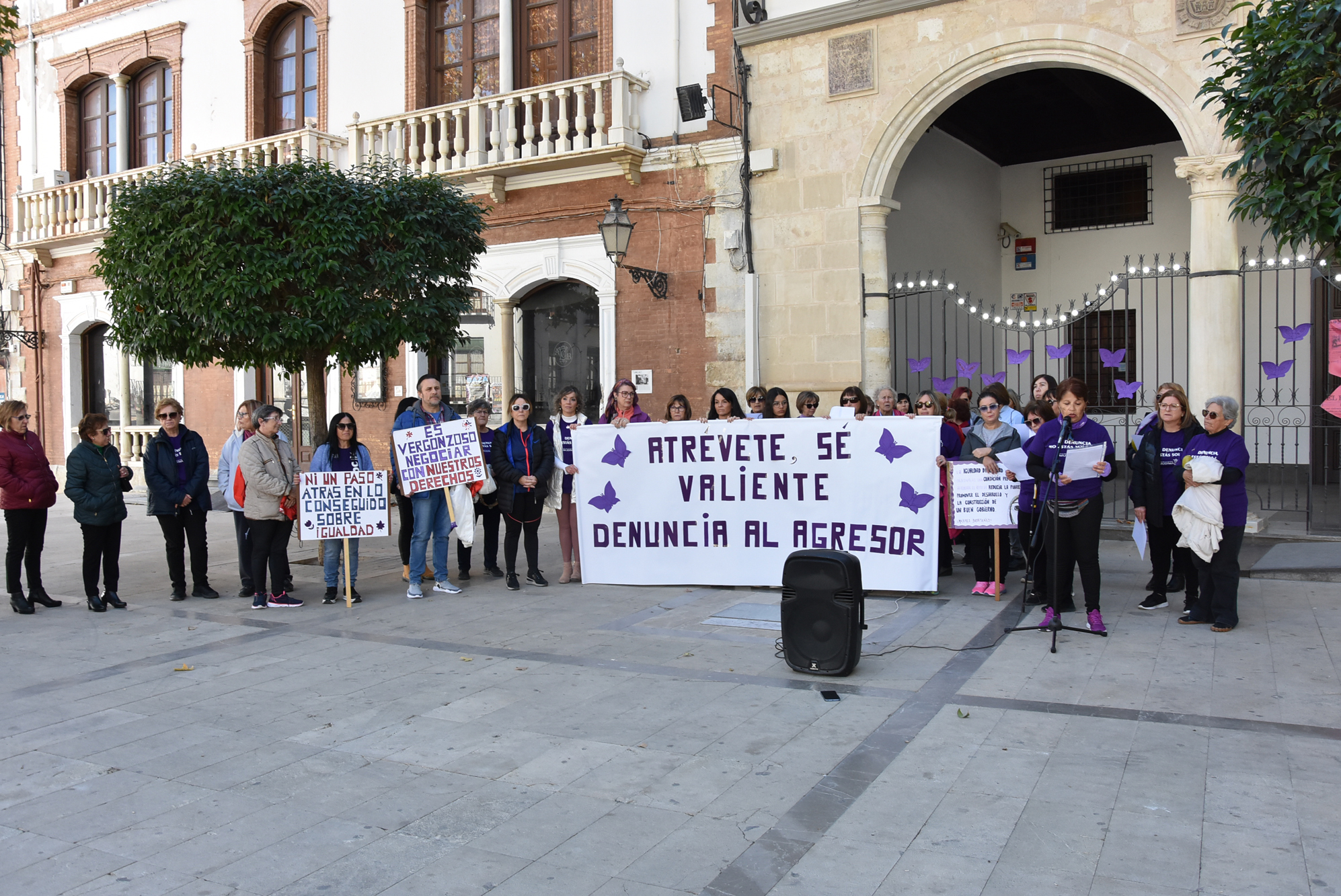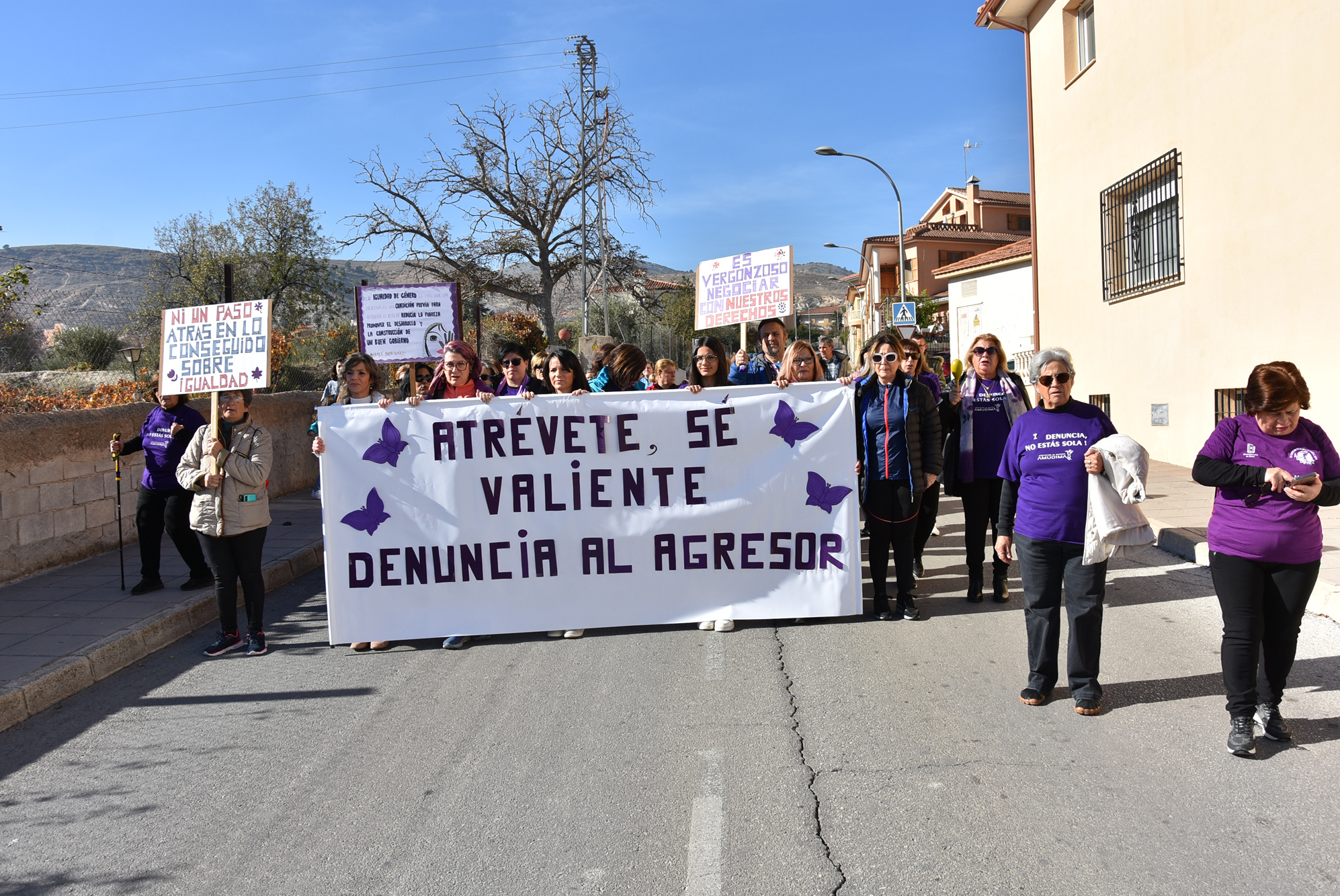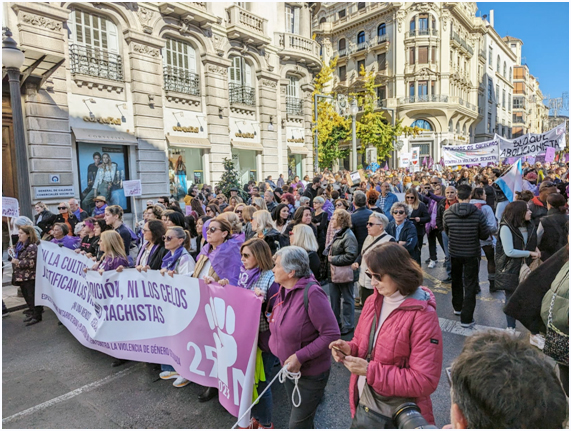 Como decimos, atrás han quedado el resto de actividades, desde el acto central del viernes a la lectura del manifiesto que se vivió por la tarde ese mismo día. El sábado 25 de noviembre la actividad se concentró en la capital granadina. Hasta allí se desplazó la concejala de Igualdad del Ayuntamiento de Baza, Priscila Martínez, para participar en la manifestación organizada por la Plataforma 8M y 25N Granada que partió al mediodía desde la Plaza Isabel la Católica. Compartió la marcha con representantes de otras administraciones como la Subdelegada del Gobierno en Granada, la delegada territorial de Igualdad, o la representante del IAM en la provincia. Por la noche, el concierto de la Banda Municipal de Música con motivo de San Cecilia se dedicó a las víctimas de la violencia de género, un gesto que fue muy agradecido por los asistentes al teatro Dengra.