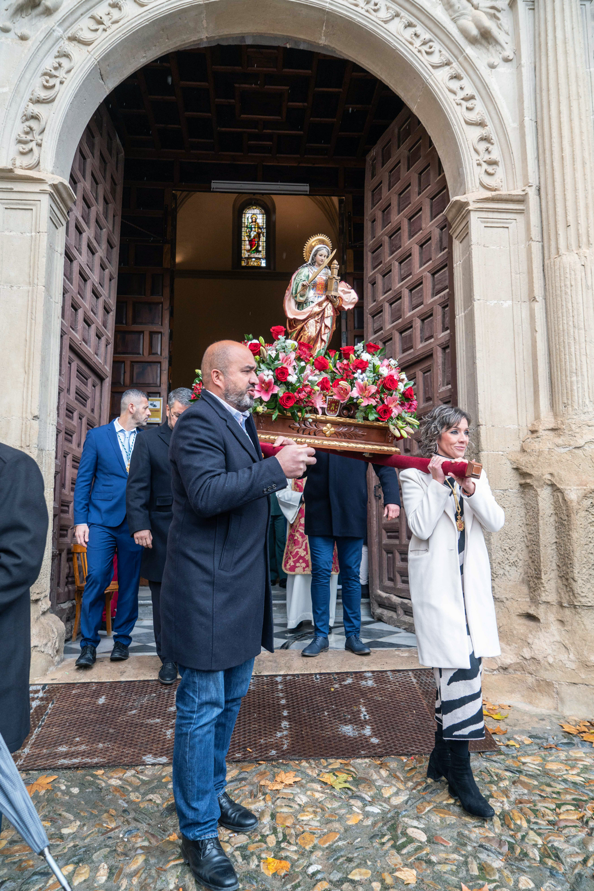 Al día siguiente el protagonismo fue para Santa Bárbara, la patrona de Baza que nos dejaron Isabel y Fernando, y que este año ha vuelto a ser día festivo en la ciudad. Una jornada con una visita anunciada y muy necesaria, la lluvia, que de forma intermitente e inconstante hizo acto de presencia durante toda la mañana molestando la celebración pero no impidiéndola. El vino fue más fuerte que el agua. Los concejales, acompañados por las fuerzas de seguridad y el clero de la ciudad, llevaron la imagen de la santa hasta la iglesia Mayor, donde se celebró la Misa en su honor. Concluido el acto religioso, volvió Santa Bárbara a su lugar de reposo, en el Museo. Arrancó entonces la actuación del Grupo Municipal de Coros y Danzas, con evidente presencia de paraguas entre el público, en la calle Trillo, un inesperado escenario con gradas incluidas muy apropiado. Y, a continuación, el vino del país se adueñó de la tarde e hizo su presentación anual ante la afición bastetana, que lo compartió con buenas viandas de aderezo. Poco a poco se acabó el hambre y la sed y siguió haciendo acto de presencia la lluvia para acabar despejando la plaza desierta. Así, la cita con la historia de este año pasó… a la historia.