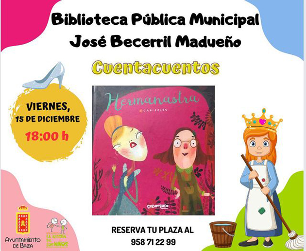 A las seis de la tarde está previsto que comience, este viernes 15 de diciembre, el último cuentacuentos del año en nuestra Biblioteca Municipal. Para esta ocasión tan especial se ha preparado la obra “Hermanastra”, escrita por Cañizares, un cuento sorprendente y divertido que rompe con lo que parece la clásica historia de un palacio con una princesa y su hermanastra, de un príncipe en busca de esposa o de unos zapatos de cristal. Y, sobre todo, con un inesperado final.