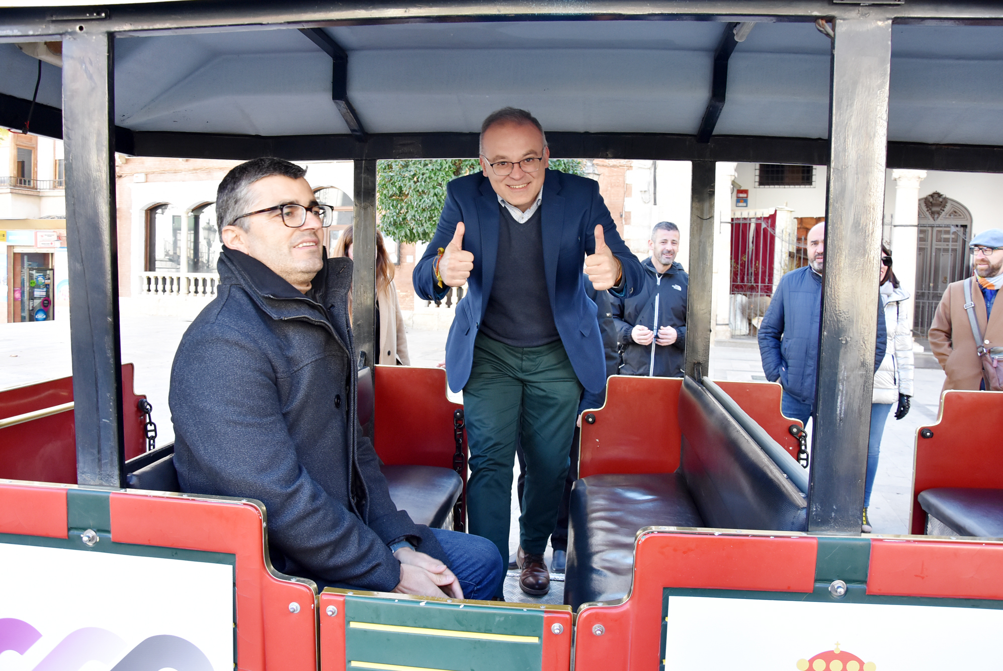 El delegado territorial de Empleo, Javier Martín, el alcalde de Baza, Pedro J. Ramos, y el presidente de la Asociación de Empresarios del Altiplano, José Antonio Lucha, acompañados de varios miembros del equipo de gobierno municipal y de algunos empresarios, participaban el pasado viernes 22 de diciembre en la puesta en marcha oficial del tren turístico navideño que hasta el próximo 4 de enero recorrerá las calles de la ciudad como principal reclamo dentro de la campaña extraordinaria de Navidad que ha preparado la Asociación de Comercio. Una campaña en la que se incluyen además 5.000 rascas que se entregarán a los clientes de los comercios asociados, con los que se pueden ganar vales de descuento por un valor total de 4.000 euros para utilizar en los establecimientos del municipio. Todo ello gracias a una subvención recibida por esta delegación para promocionar el sector comercial de la localidad.
