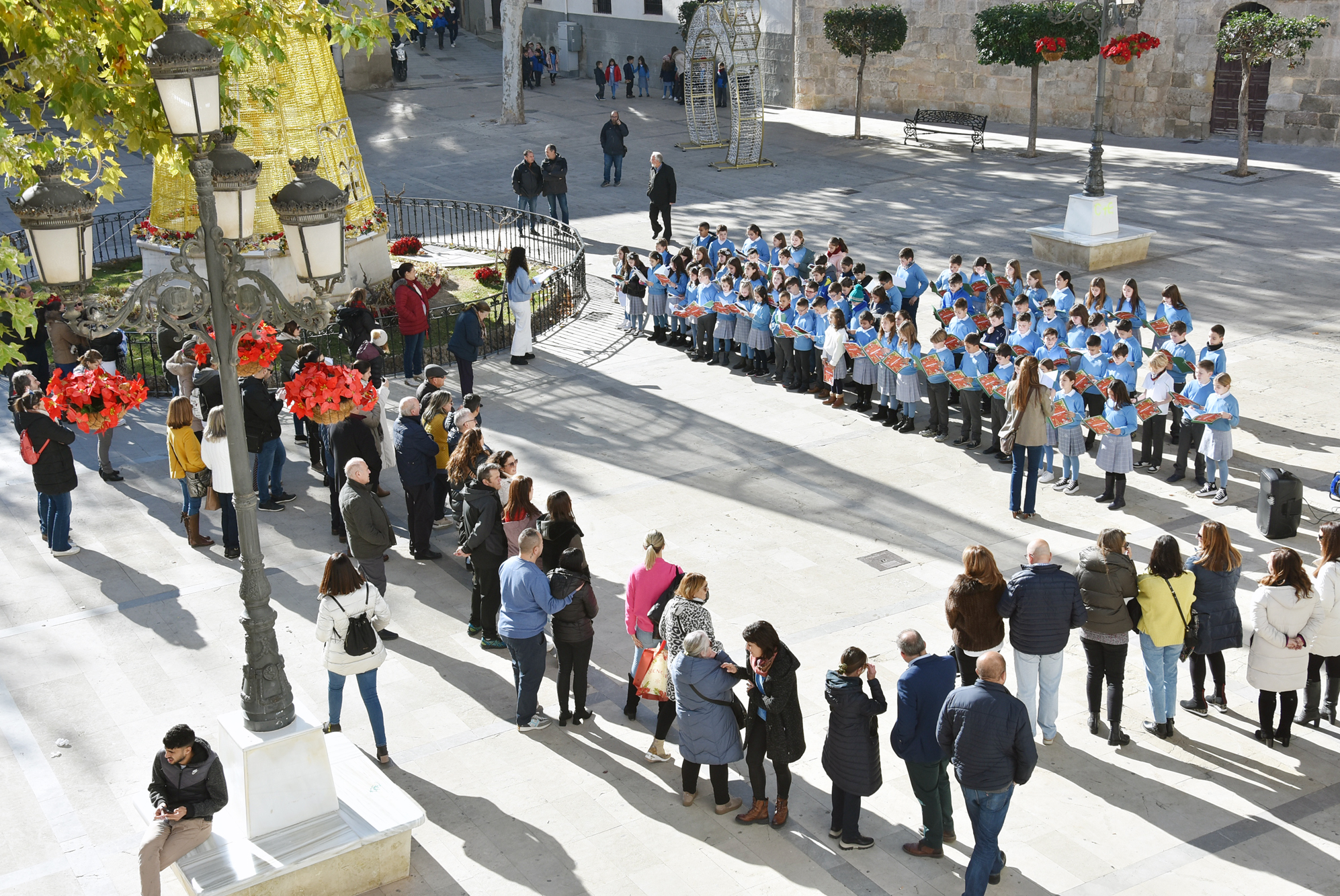 Culminada la visita del delegado de Empleo, los representantes municipales se han desplazado hasta la Plaza Mayor, donde han estado presentes en el concierto de temas navideños que han realizado los alumnos del colegio de La Presentación.