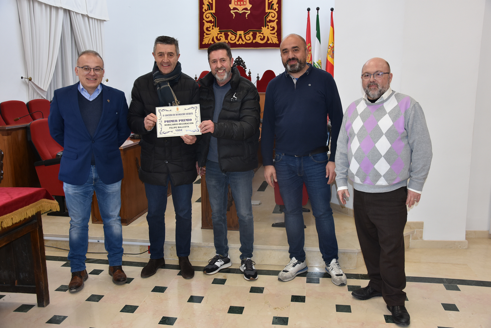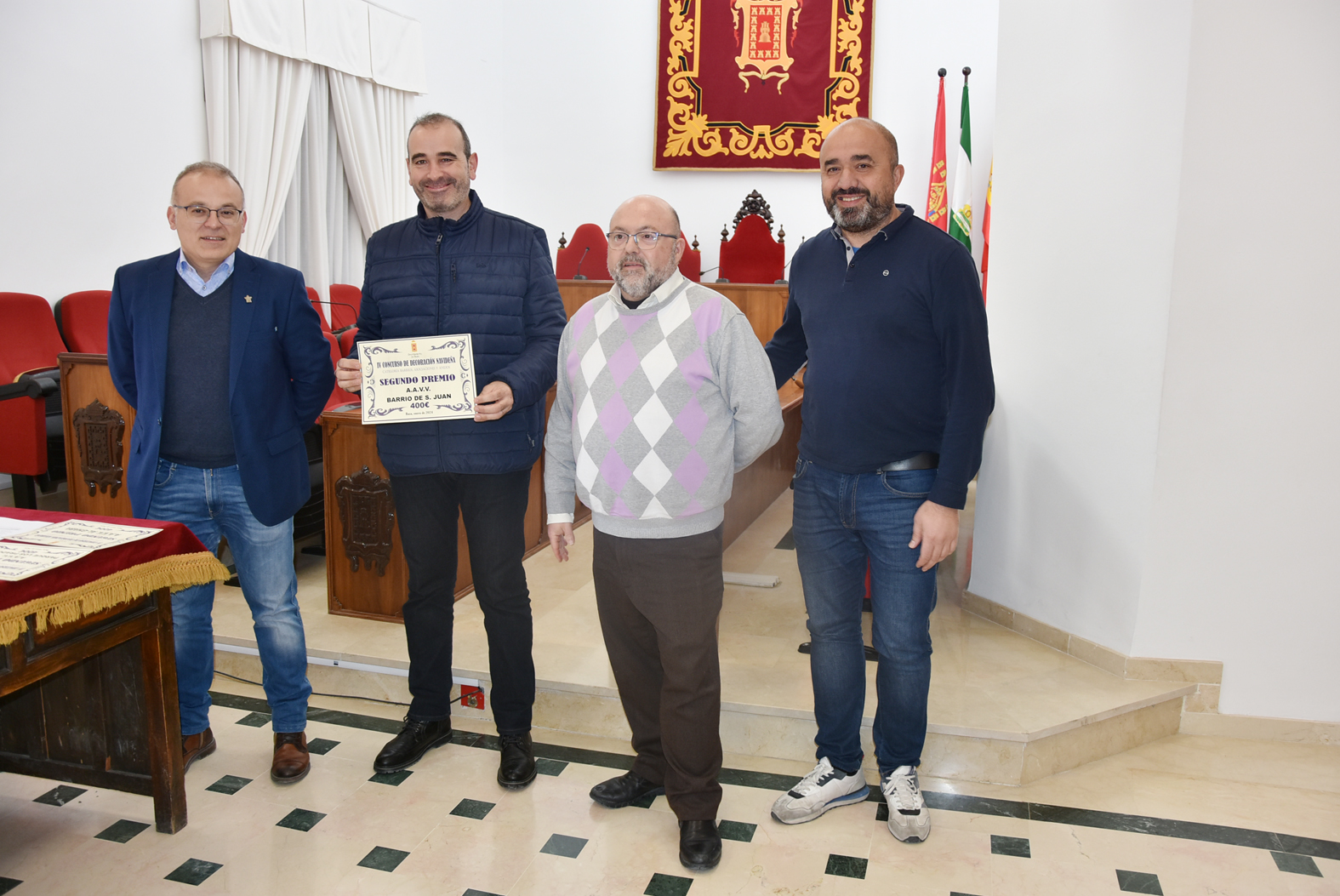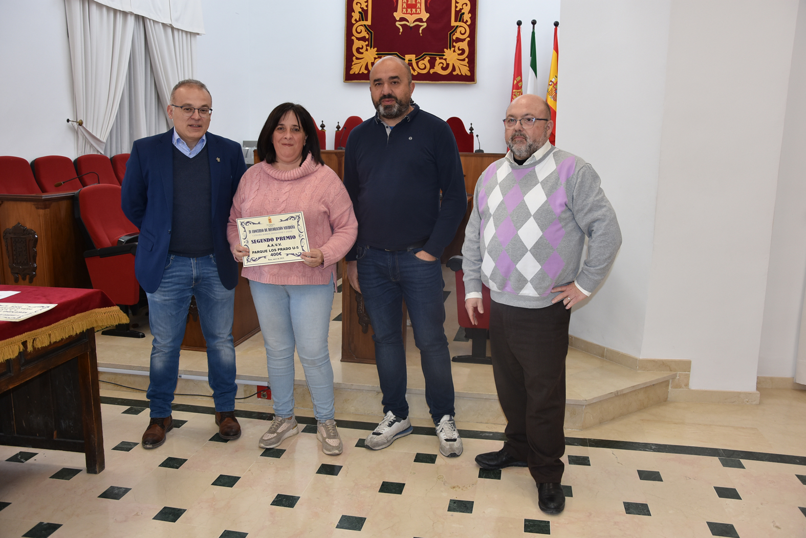 El jueves 11 de enero, al mediodía, se entregaron los premios del IV Concurso de Decoración Navideña que se ha celebrado durante las pasadas fiestas en nuestra ciudad. El salón de plenos acogió esta reunión en la que las asociaciones de vecinos y los comerciantes presentes tuvieron además ocasión de dialogar con el alcalde, Pedro J. Ramos, y con los concejales de Comercio y Barrios, José Antonio Valdivieso, y de Turismo y Cultura, José Gabriel López, que también participaron en el acto. Uno a uno, los representantes de las entidades ganadoras fueron recogiendo el diploma acreditativo de su participación en este evento.