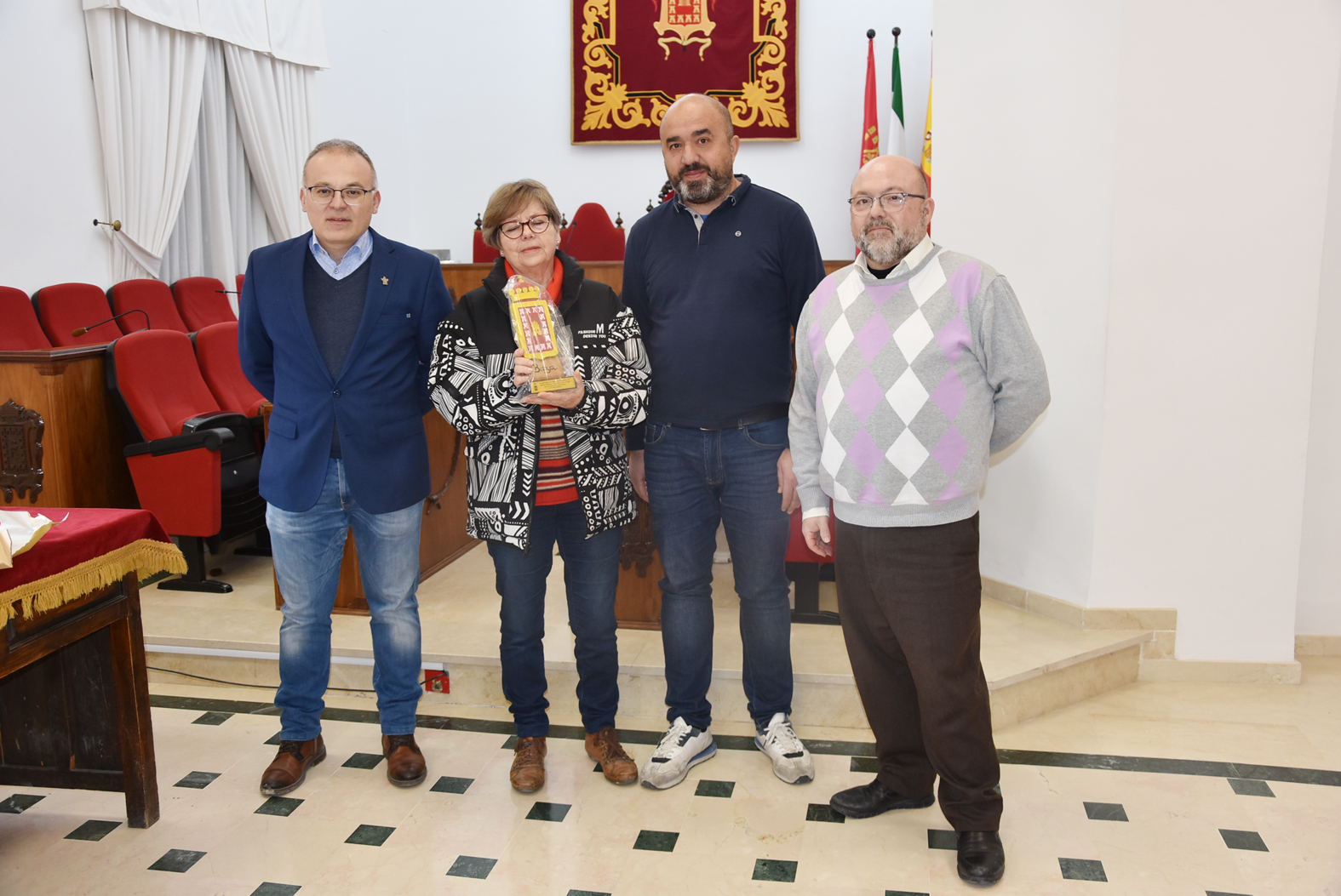 El equipo de gobierno aprovechó esta ocasión, en la que se pretendía agradecer la participación de las asociaciones de vecinos y de los comerciantes en la decoración de la ciudad durante la pasada Navidad, para reconocer y agradecer también el trabajo que han realizado este año, y que vienen realizando desde hace mucho tiempo, los miembros de la Asociación Belenista La Encarnación, que son los responsables del Belén Municipal que han podido contemplar y disfrutar miles de personas en el patio del Museo Arqueológico. Recogió una réplica del escudo de Baza la presidenta de este colectivo.