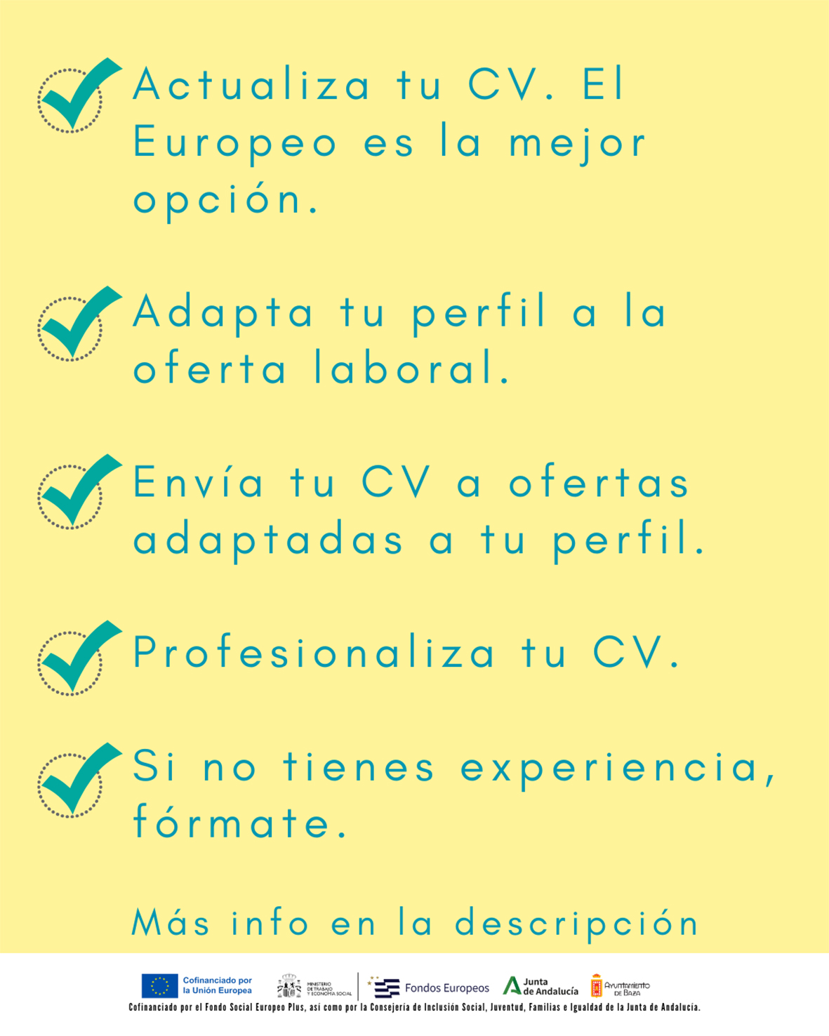 Si quieres que te ayudemos, los requisitos para poder acceder a este recurso son estar empadronado en las Cuevas de Baza, tener entre 16 y 65 años y estar dispuesta a mejorar su situación social y laboral.