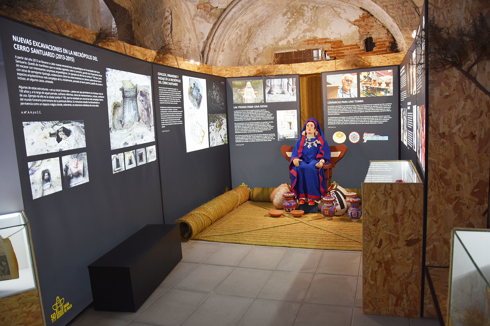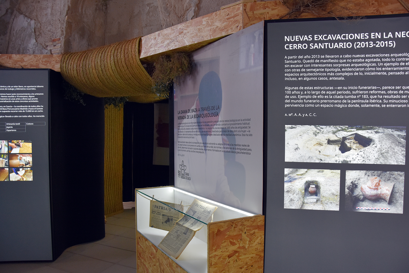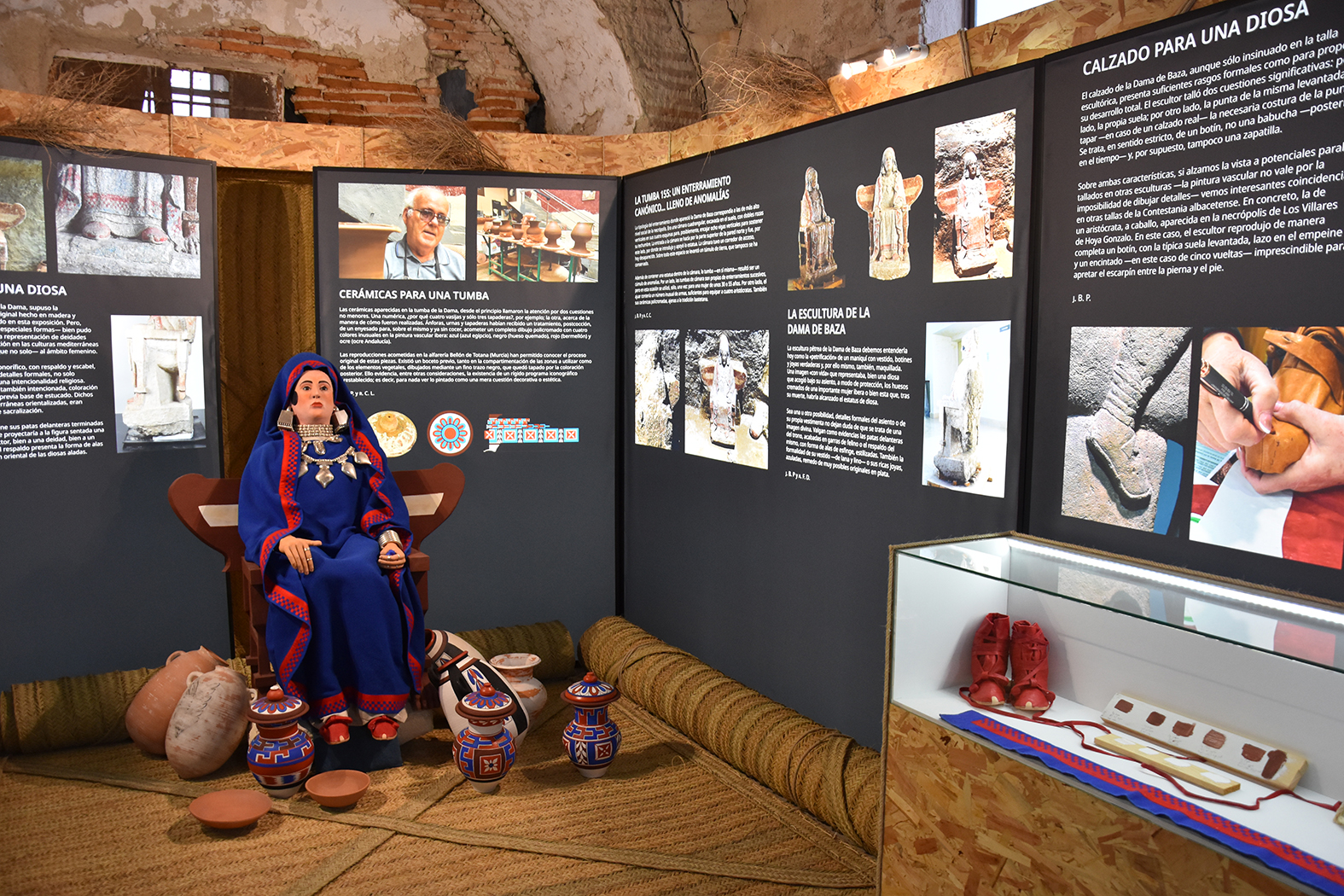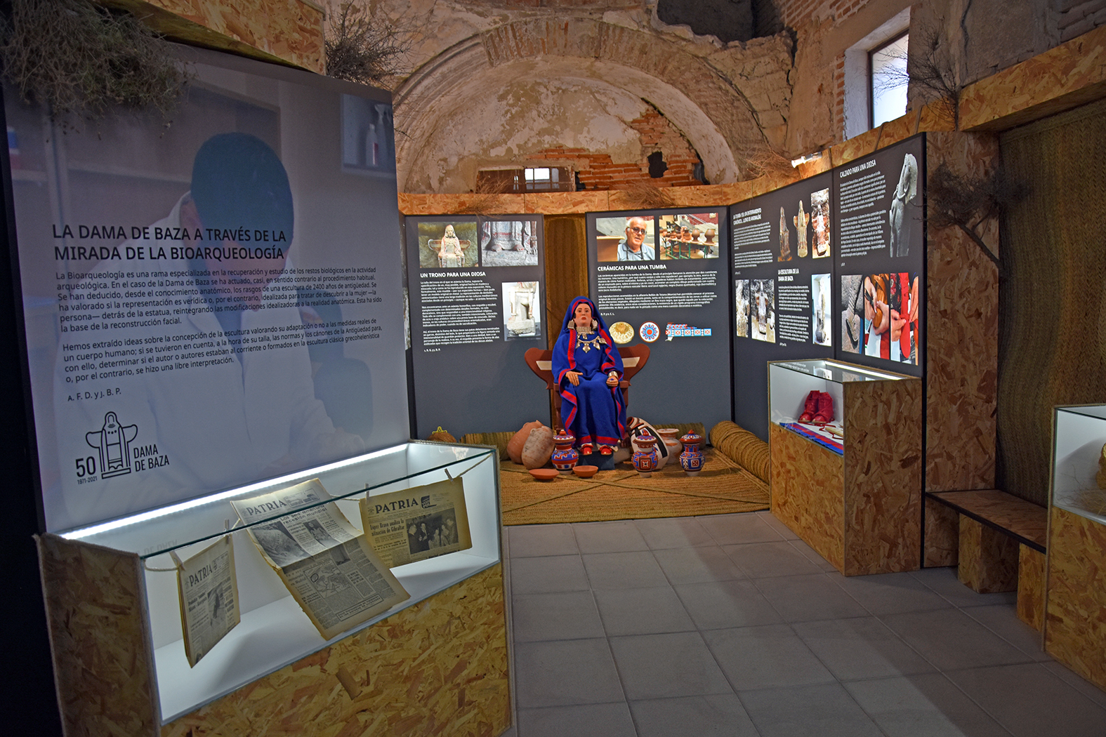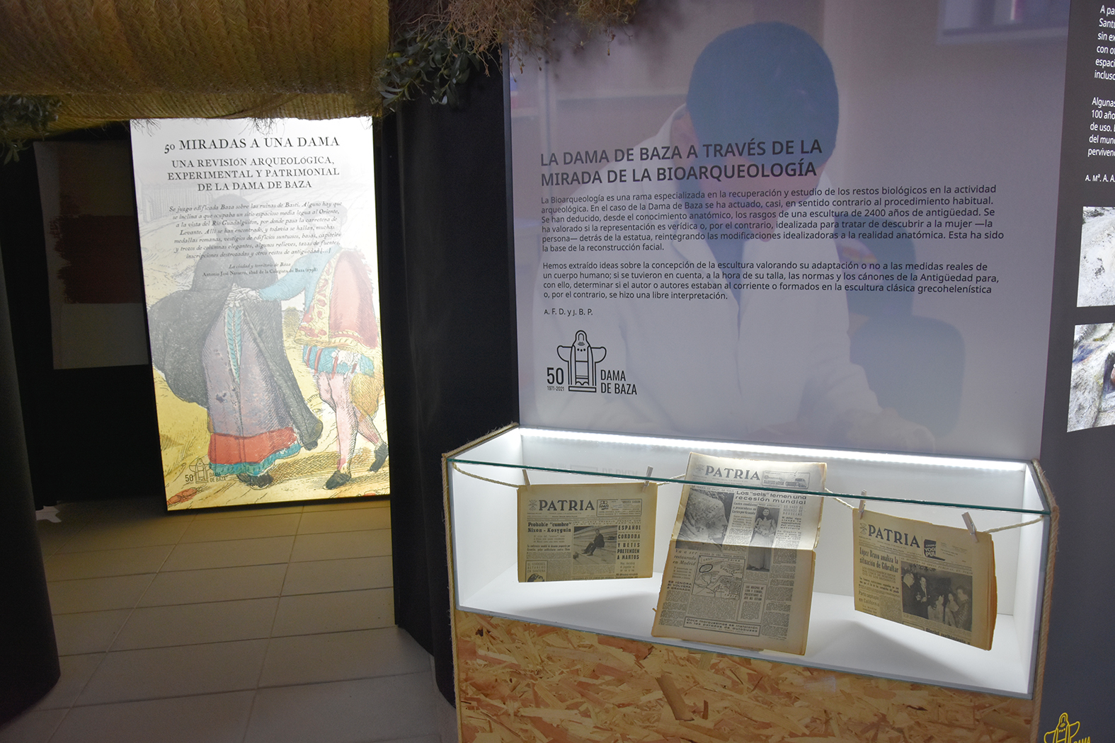 Para instalar la original muestra sobre nuestra gran embajadora se ha aprovechado el espacio de la antigua sacristía del templo, a la que se accede por una de las capillas laterales, de manera que se incorpora perfectamente al habitual recorrido que se efectúa en el centro interpretativo. En esta nueva dependencia se han recolocado gran parte de los materiales que conformaban la exposición en Santo Domingo, tanto los paneles explicativos como los elementos de mayor valor, entre los que se encuentran el telar íbero y, por supuesto, la réplica de la Dama sobre la que se han colocado las ropas y las joyas que debió vestir hace veinticuatro siglos la diosa que representa la escultura. “Estamos convencidos de que “50 miradas a una Dama” va a servir para dar más fuerza e interés a este Centro de Interpretación de la Cultura Íbera, una nueva razón para revisitarlo y un elemento más para aquellos que quieren profundizar en el conocimiento de la sociedad que creó Basti y que vivió en nuestra tierra hace tantos siglos ya”, ha remarcado el concejal de Cultura, José Gabriel López.