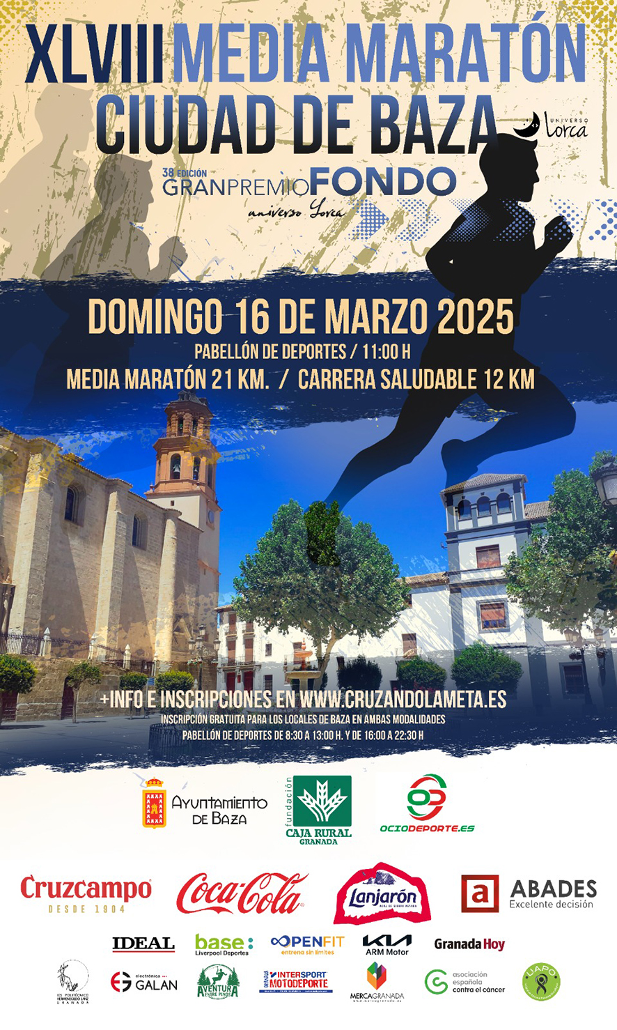 Desde la concejalía de Deportes se aprovecha esta información para recordar a los participantes de esta 48ª Media Maratón Ciudad de Baza que aún está abierta la inscripción para la prueba, que se celebrará el domingo 16 de marzo. La organización recuerda que dicha inscripción es totalmente gratuita para corredores locales, debiendo realizarse en el pabellón municipal de deportes de Baza.