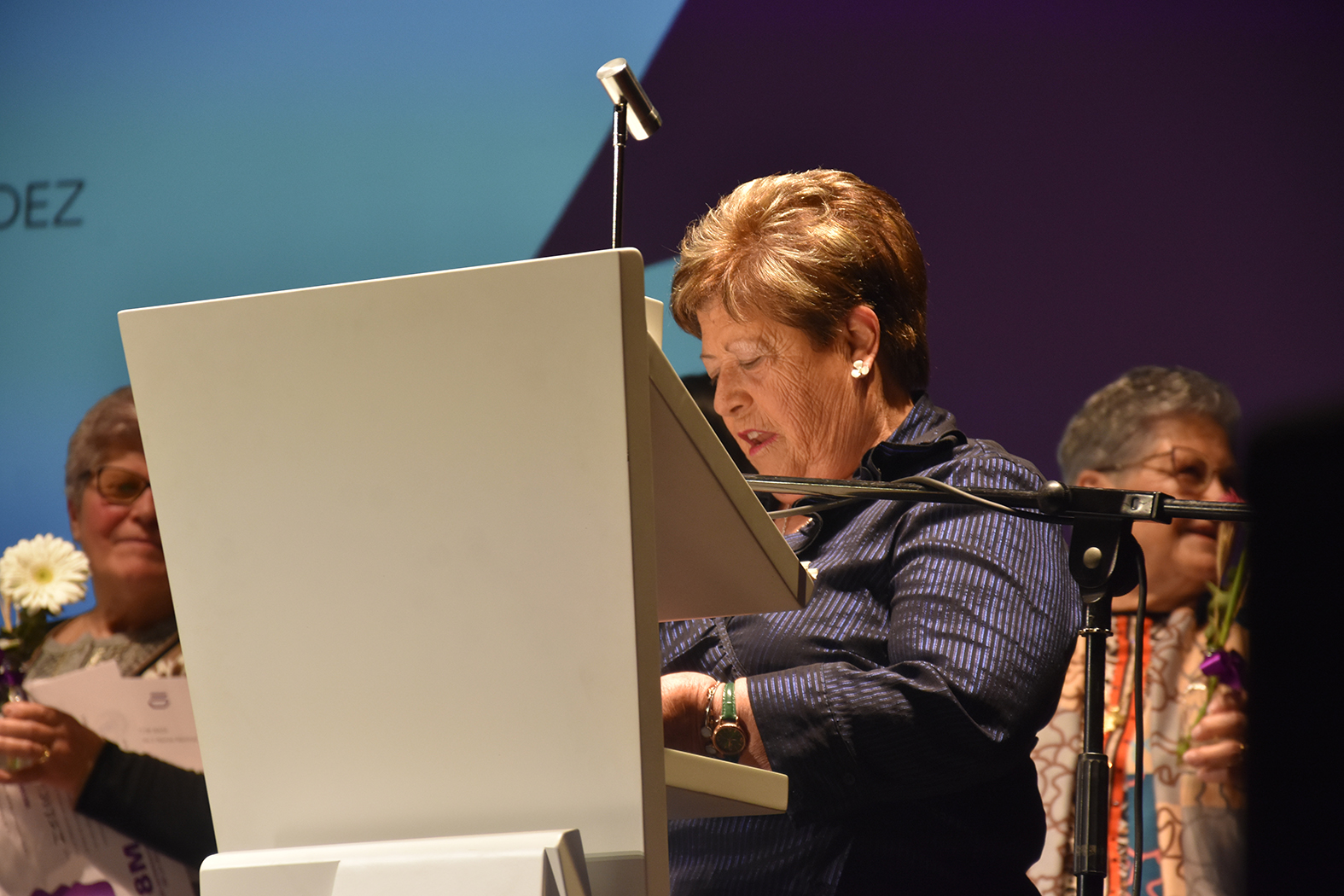 Vanesa explicó la filosofía del acto. Para homenajear y dar visibilidad a las mujeres bastetanas, que era el eslogan de la gala, se pidió a los distintos barrios de la ciudad que nos hicieran llegar los nombres de las vecinas que ellos querían reconocer. Algunos aún lo están pensando. A partir de ahí bastó con reunirlas, darles un guión y hacer con ellas una película que pudimos ver a lo largo de la velada, una especie de cortometraje donde nos contaron sus secretos, sus experiencias, sus vivencias, sus opiniones y en la que, incluso, aprovecharon para brindar por ellas y por todas las mujeres con una copita de anís. Luego, en tres grupos, salieron al escenario y recogieron de manos del alcalde y de la concejala un diploma y una flor que las acreditaba como “mujeres destacadas”, que ya era hora de que alguien lo hiciera. Algunas tomaron la palabra para agradecer el gesto y para reclamar igualdad. Para que las conozcan, aquí están sus nombres: María Castaño, Isabel Parra, Antonia García, Isabel Jiménez, Piedad Expósito, Ovi López, Felisa Rodríguez, Isabel Navarro, Paqui Lozano, Ramona Domenech, Loli Rodríguez, María Carmen Vega, Luisa Vega, Josefa Beteta, Dolores Pizarro, Mª Dolores Martínez, Puri Corbalán, Ramona Morcillo, María M. Sola, Mª Josefa López, Mª José González, María Rodríguez, Mª Carmen Vidal, Manuel Rodríguez, Dolores Bulto, Piedad Mateos, Piedad Franco, Visitación Salas, Pili Rebelles, Ana Mª Martínez, María Solera, Ana Mª Florentín y Lola Gallego.