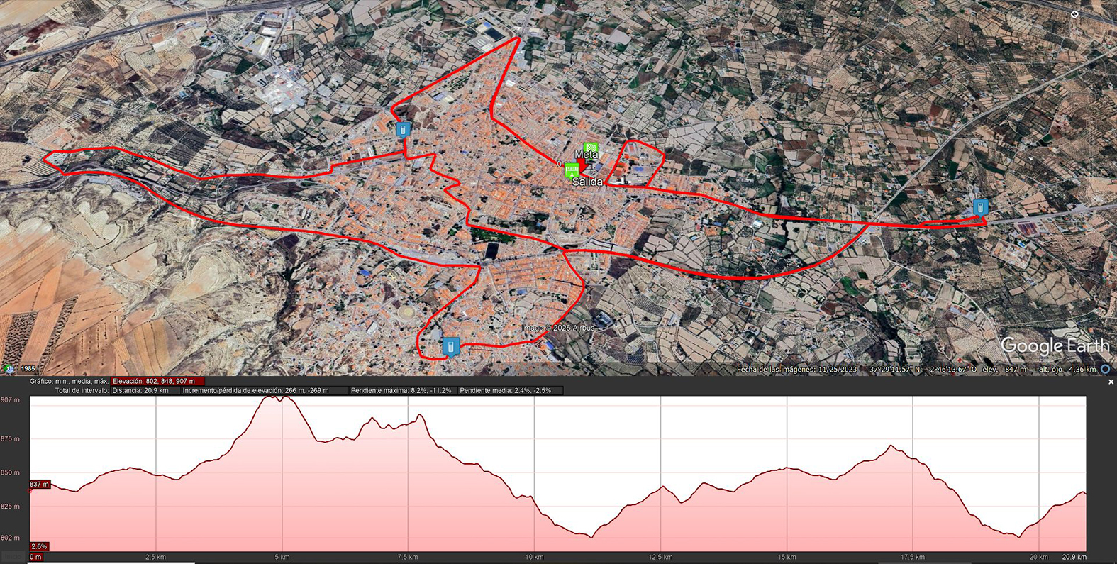 Además de todo el dispositivo en la zona de salida y llegada, hace días que quedó establecida también la organización total del recorrido que tendrán que realizar los corredores, en la que participarán decenas de voluntarios, miembros de Protección Civil y de Policía Local para que no haya ningún problema. La carrera este año se iniciará en sentido contrario al habitual, es decir, en dirección a la carretera de Caniles. Por esta vía, que será cortada al tráfico durante varias horas, transcurrirán los primeros kilómetros hasta la altura del camino del Caserío de Montoro. Desde allí regresarán para tomar la vía verde en dirección a Baza. En la glorieta de la avenida de Ronda girarán para subir por San Marcos hasta el barrio de Las Cuevas, que recorrerán por la calle Ángel para bajar de nuevo por avenida Atleta José Luis Martínez. Al final de esta calle girarán hacia el recinto ferial para incorporarse de nuevo a la vía verde en dirección al Jabalcón, que abandonarán para dirigirse a la zona del cementerio. Por la carretera del camposanto regresarán a la ciudad para alcanzar después la carretera de Benamaurel y la avenida José Salinas. Subirán hacia el centro por la avenida de Murcia para buscar la zona de meta por la calle Sierra Morena. Los que quieran hacer los 21 kilómetros repetirán el recorrido, pero, en vez de subir de nuevo a Las Cuevas, en la glorieta de avenida de Ronda se adentrarán en el centro urbano por la Carrera de Palacio. Bajando por Caños Dorados, Alhóndiga y Plaza Mayor, buscarán la carretera de Benamaurel, avenida José Salinas y subir de nuevo por avenida de Murcia hasta el Parque de la Constitución. En todos los tramos habrá indicaciones suficientes y se dispondrán personas de la organización para que nadie confunda el itinerario. Desde la organización se pide a los vecinos que salgan a la calle esa mañana para animar a los corredores, que les aplaudan, que les reconozcan su esfuerzo y que, al mismo tiempo, tengan paciencia con los cortes de tráfico que tendrán que producirse en determinados puntos del municipio y alrededores para garantizar la seguridad de los participantes.