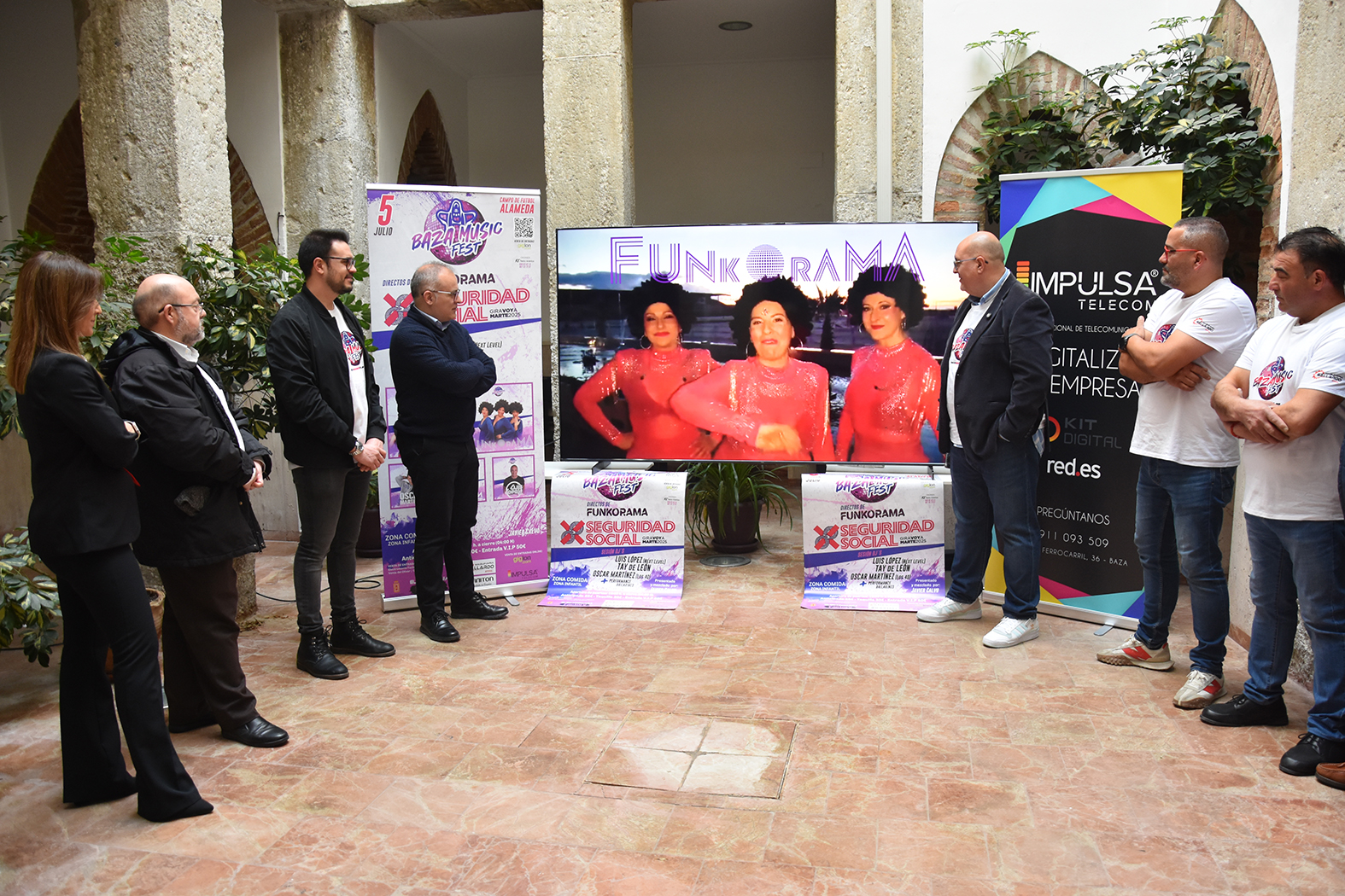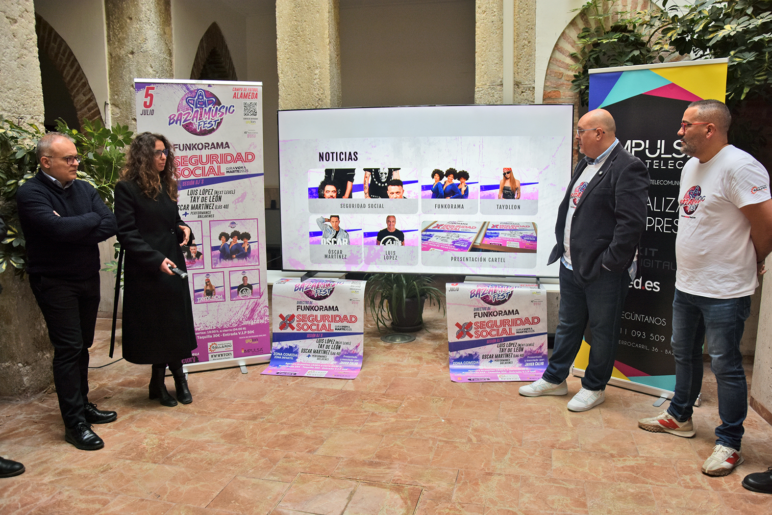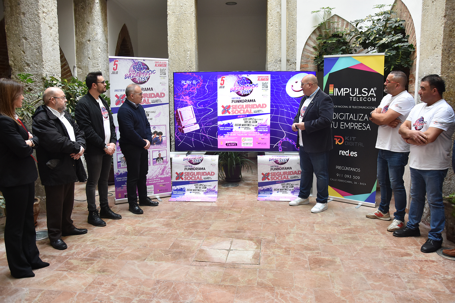 El patio del Ayuntamiento de Baza ha acogido en la mañana de este martes, 25 de marzo, la presentación oficial de la segunda edición del Baza Music Fest, una espléndida iniciativa musical que vuelven a promover empresarios bastetanos, que aumenta la oferta lúdica y festiva del municipio y que pretende asentarse en la programación cultural de nuestra ciudad. Junto a ellos ha estado el alcalde, Pedro J. Ramos, que ha agradecido a los promotores su esfuerzo y su apuesta para poner en marcha una actividad que aumenta el atractivo de Baza, y los concejales de Cultura y Gobernación.