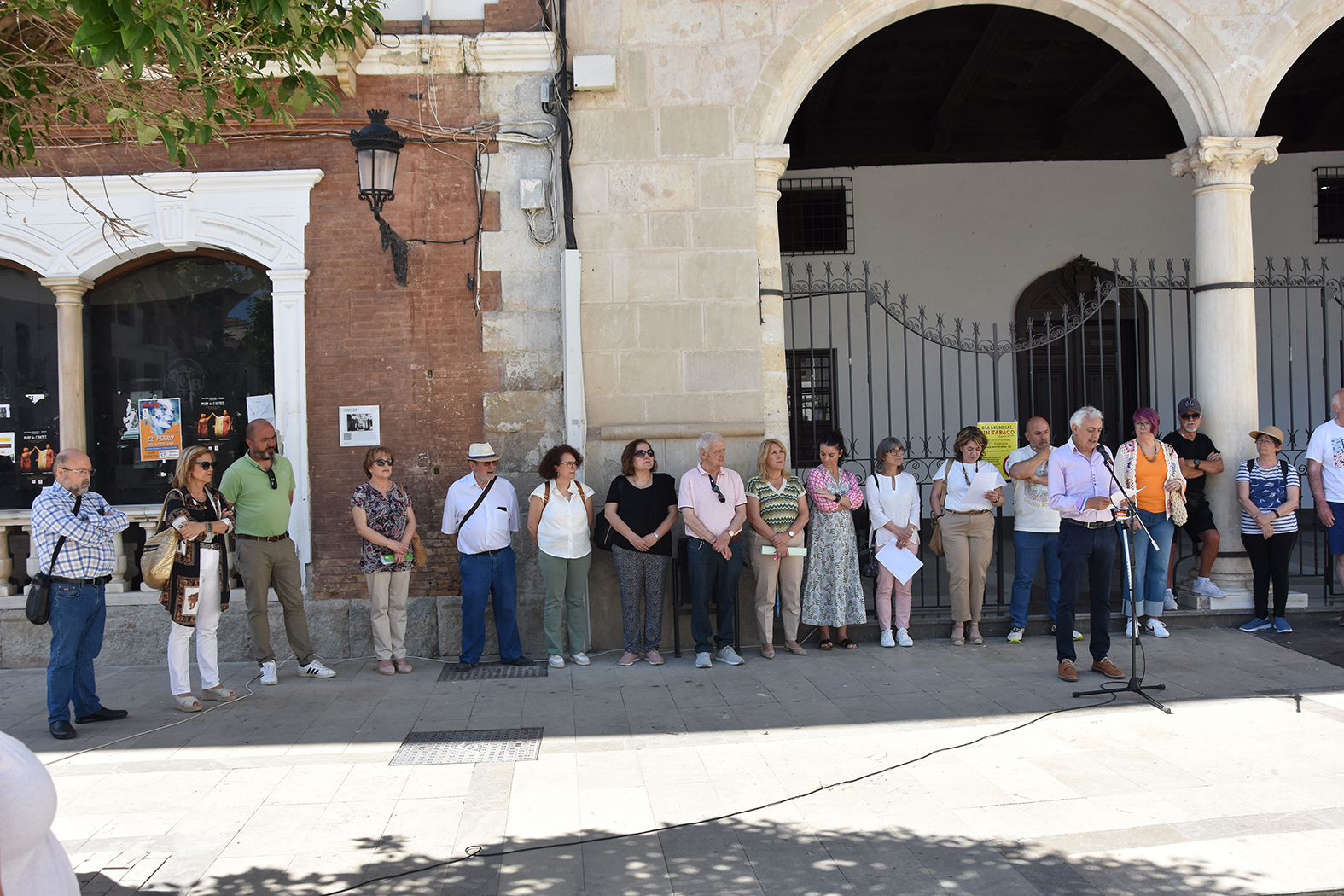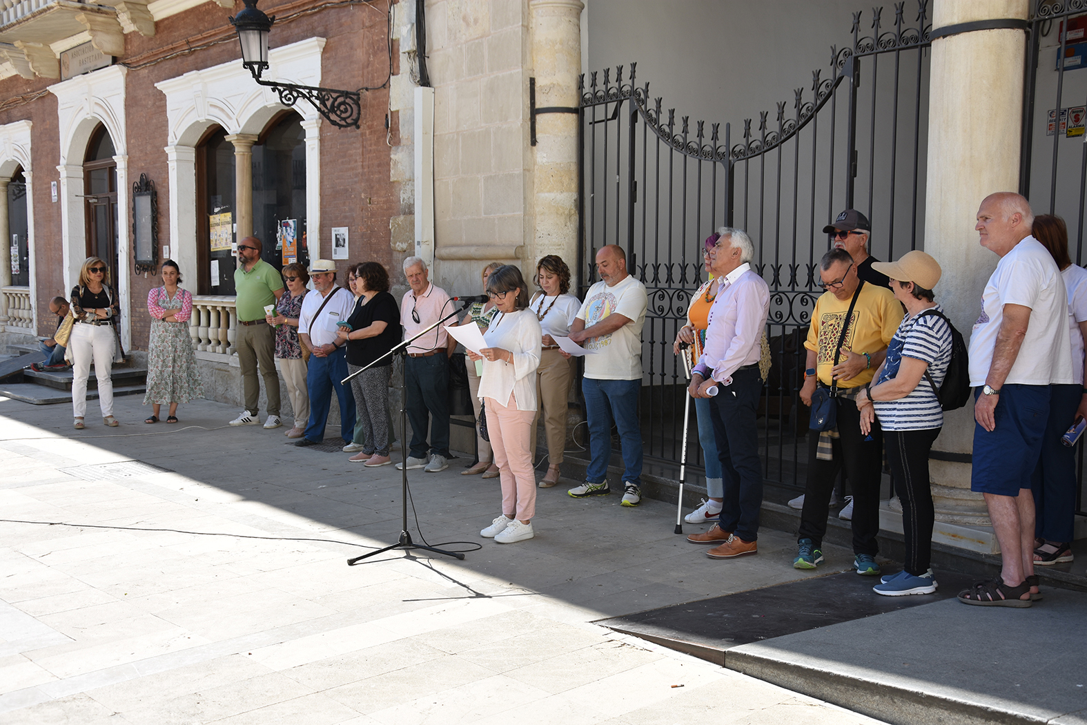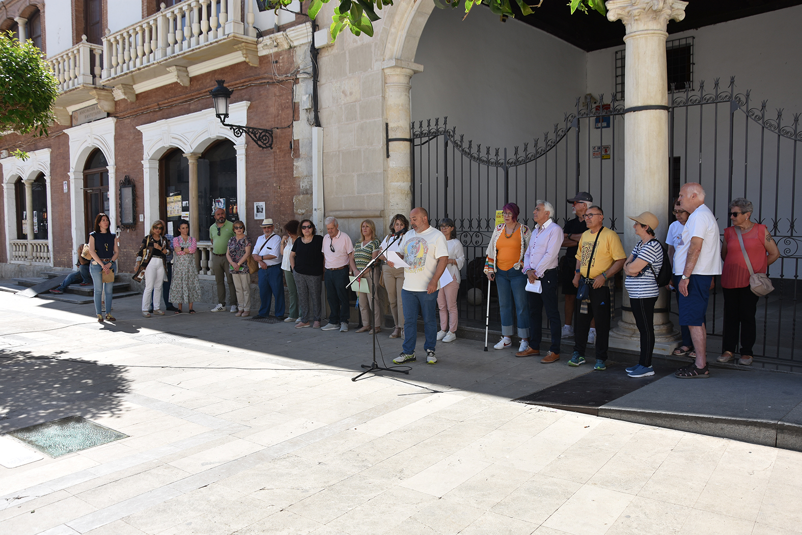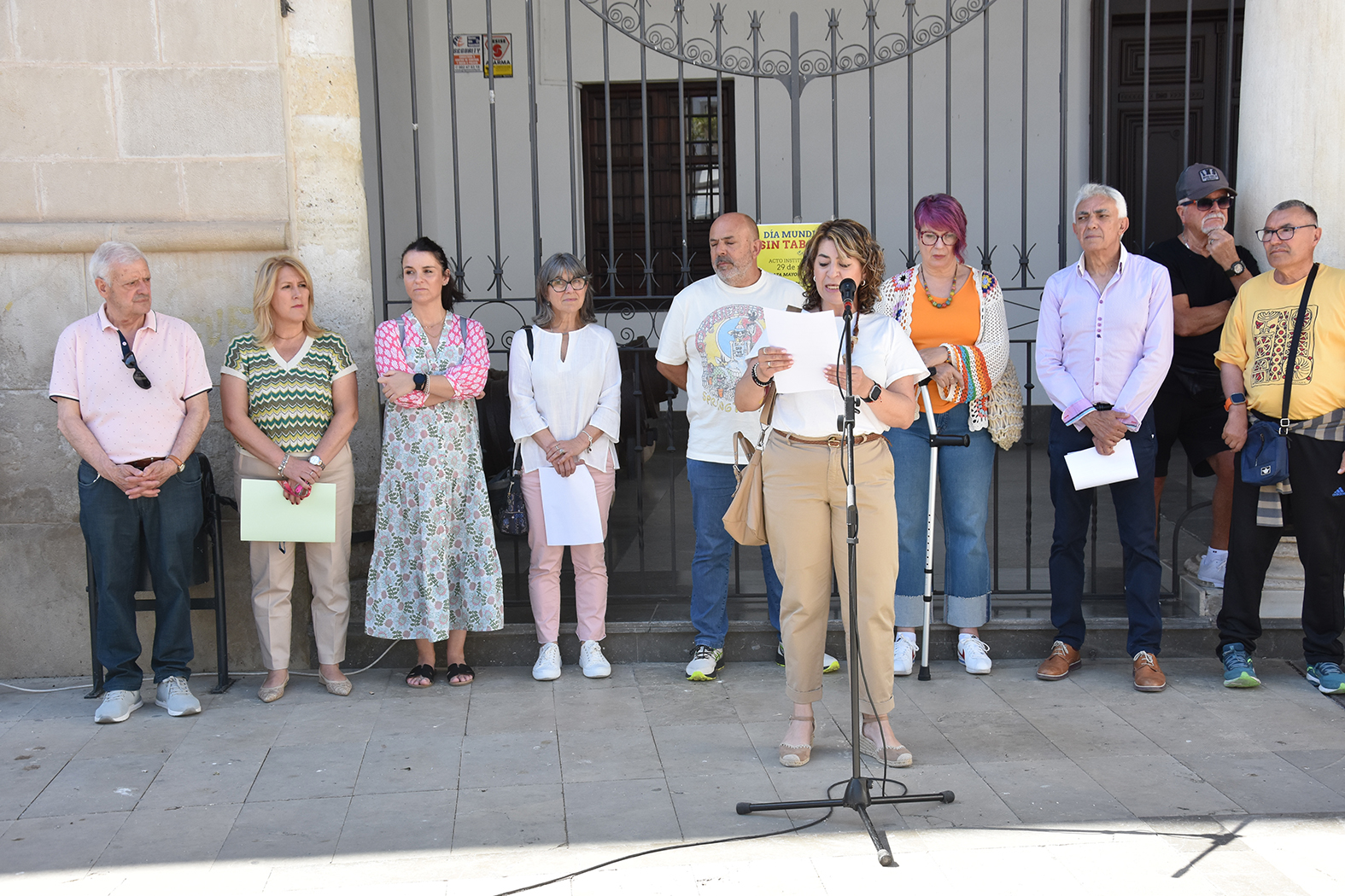 Ante la fachada del Museo Municipal, en la Plaza Mayor, se han leído varios manifiestos. Ha comenzado la lectura la concejala de Salud del Ayuntamiento, Mª Carmen Sánchez, y la han seguido representantes de la concejalía de Bienestar Social, de Ad-Hoc y del AGS Nordeste, concluyendo las intervenciones el presidente de la Junta Local de la AECC, Francisco Manzanera.