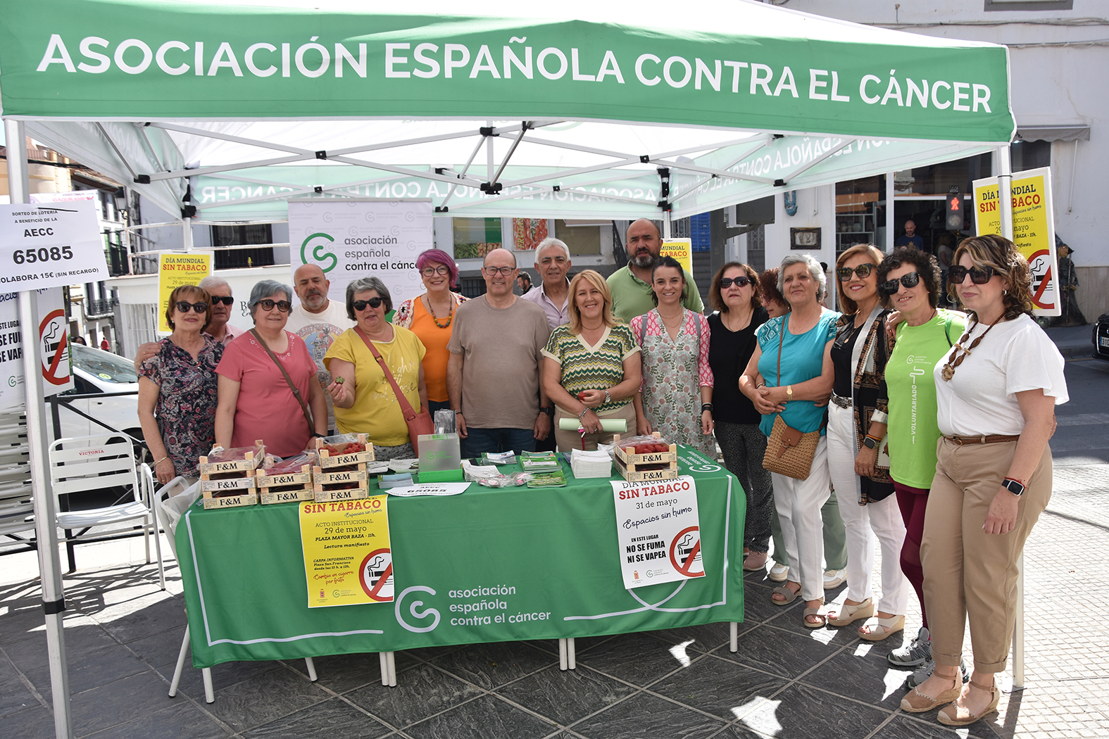Al término de este acto, la comitiva se ha trasladado hasta la Plaza de San Francisco, donde la AECC ha instalado durante la mañana una carpa en la que han intercambiado cigarrillos por fruta a los viandantes para, de manera simbólica, concienciar del daño que se está produciendo a las personas y a la sociedad en general.