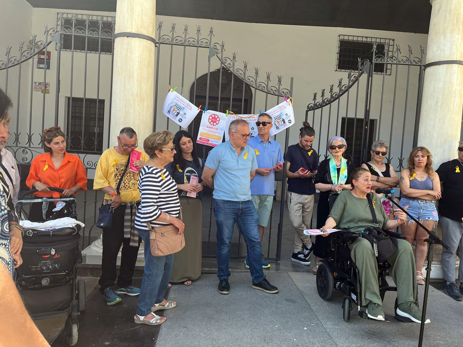 Visibilizar y dar a conocer las circunstancias a las que se enfrentan a diario las personas afectadas por Esclerosis Múltiple fue el principal objetivo de la concentración que se vivió el pasado viernes 30 de mayo, al mediodía, en la Plaza Mayor. Una convocatoria realizada por ASAFEMA, la Asociación de Afectados/as por la Esclerosis Múltiple del Altiplano, con motivo de la jornada mundial dedicada a esta dolencia que afecta a más de 55.000 personas en España y a más de 2,9 millones en el mundo.