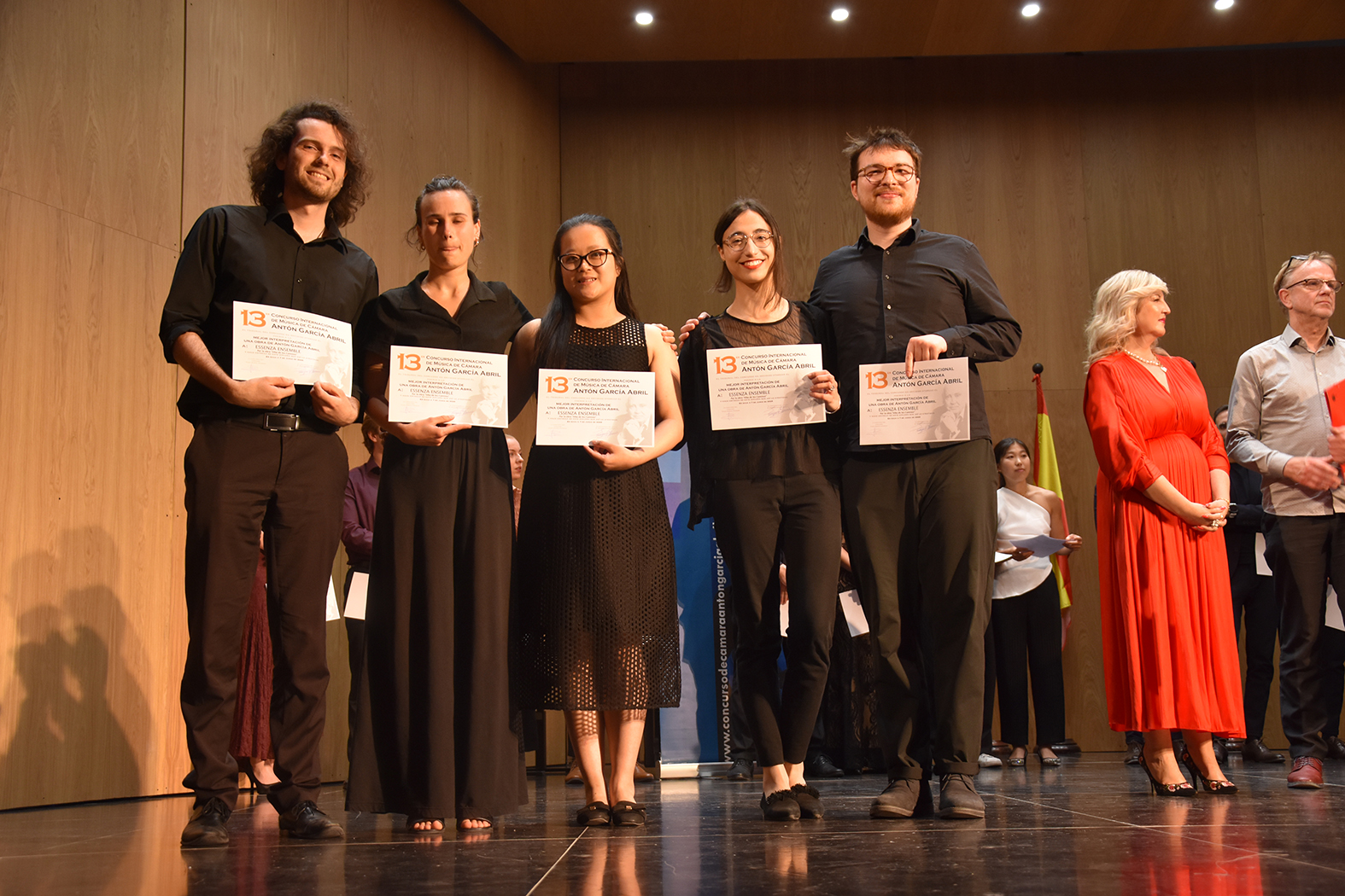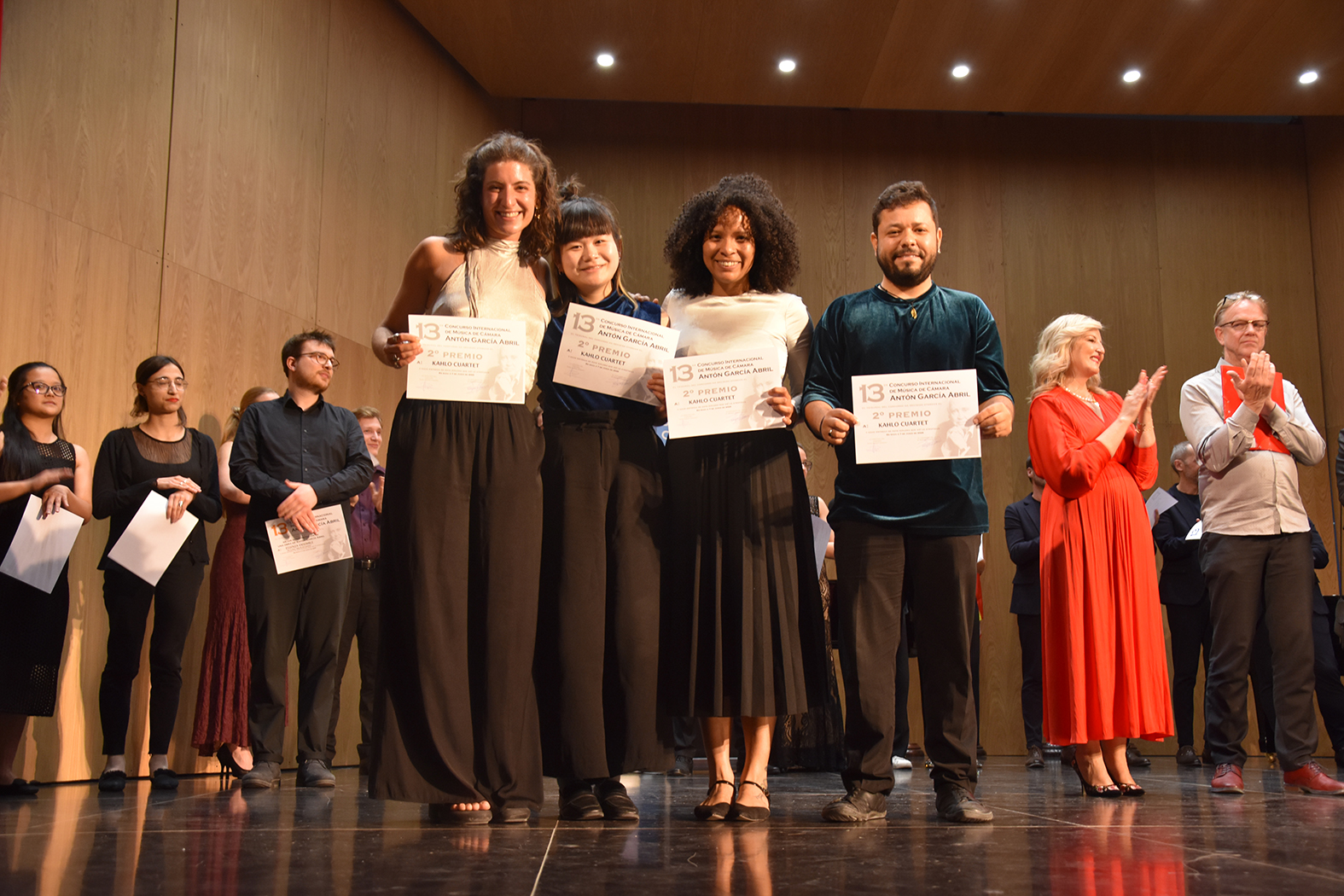 Tras “Happy Dog Duo”, que consiguen 12.000 euros, el segundo puesto ha sido para “Kahlo Quartet”, un cuarteto de cuerda de Alemania, que obtienen 5.000 euros. La tercera posición ha correspondido a “Dúo Dagda”, de clarinete y piano de La Coruña, que se embolsan 3.000 euros. El premio a la Mejor Interpretación de una obra de Antón García Abril, reconocido con 3.000 euros, ha sido para “Essenza Ensemble”, de Países Bajos, por la interpretación de “Alba de los caminos”. Y el premio a la Mejor Interpretación de una obra española, dotado con 1.000 euros, se lo llevó “Duo Sillage”, de Madrid, por la interpretación de “Requiebros”, de Gaspard Cassadó. Los finalistas fueron “Varua Duo” (Alemania), “Duo Einklang” (Austria), “Ainola Quartet” (Finlandia), “Faccini piano Duo” (Italia), “Duo Sillage” (Madrid), “Folium Fugit” (Murcia) y “Cuarteto Gorgutes” (Valencia).