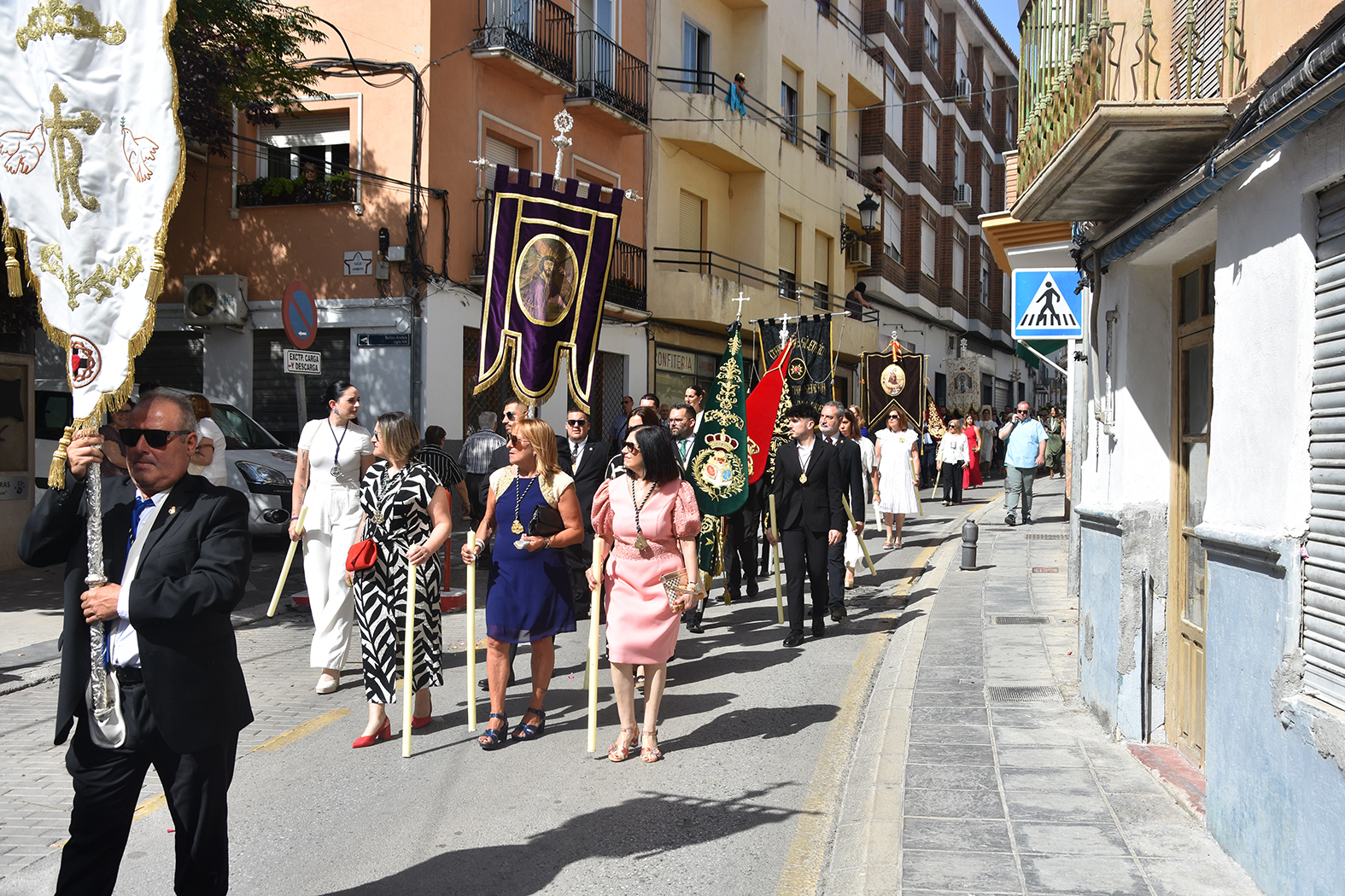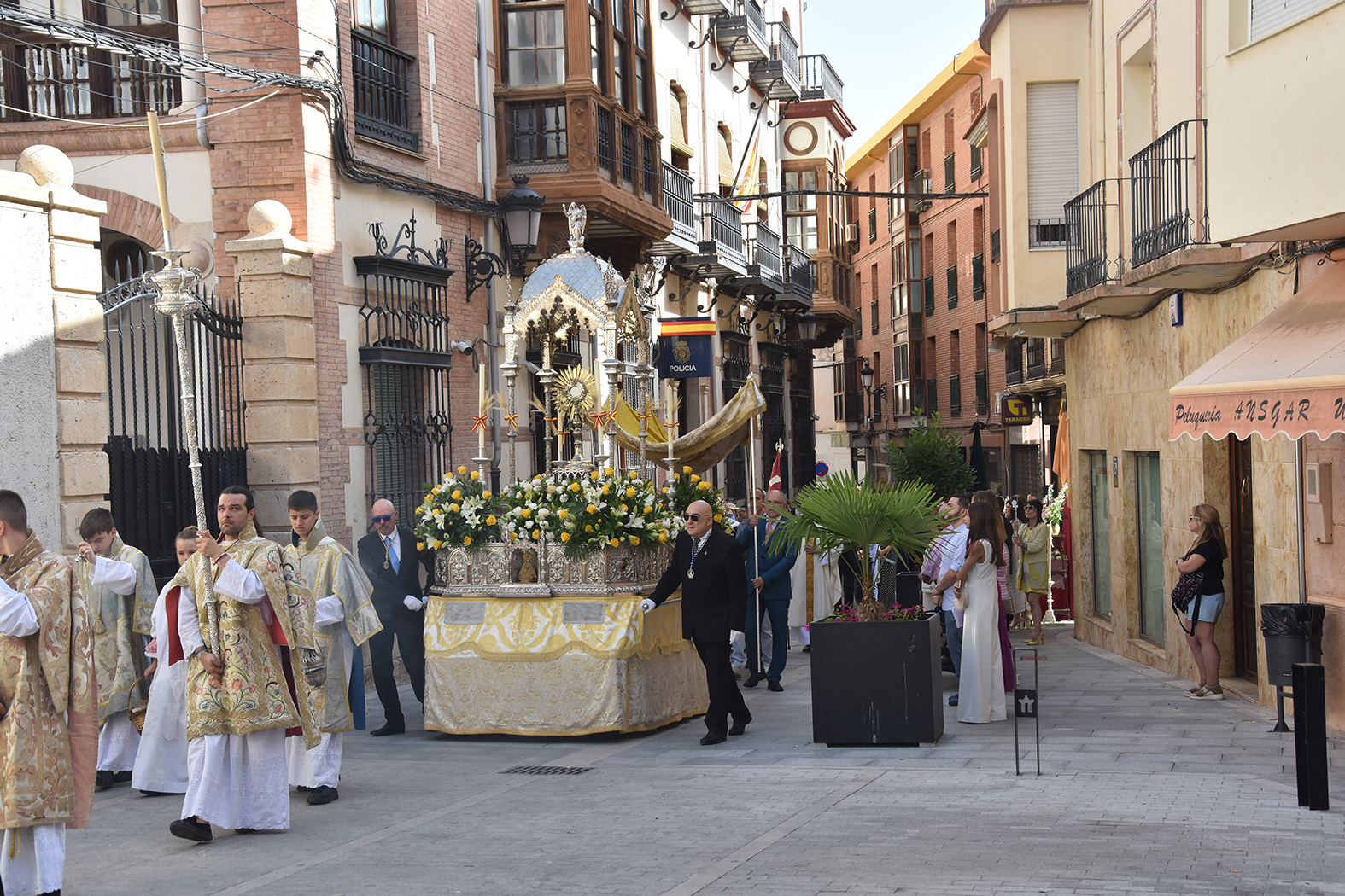 Una procesión protagonizada por los niños y niñas que este año han recibido la Primera Comunión, que ha estado presidida por el clero del municipio y por la corporación municipal bajo mazas y en la que también han participado las cofradías y hermandades bastetanas, la Banda Municipal de Música y la Banda de Tambores y Cornetas de la Hermandad del Nazareno. Junto a ellos, varias decenas de padres y madres acompañando a sus hijos y surtiéndolos principalmente de agua ante las elevadas temperaturas que se estaban produciendo. Precisamente para intentar remediar el golpe de calor, el clero ha decidido adelantar este año tanto la misa como la misma procesión, que se ponía en marcha a las 10:00 h.