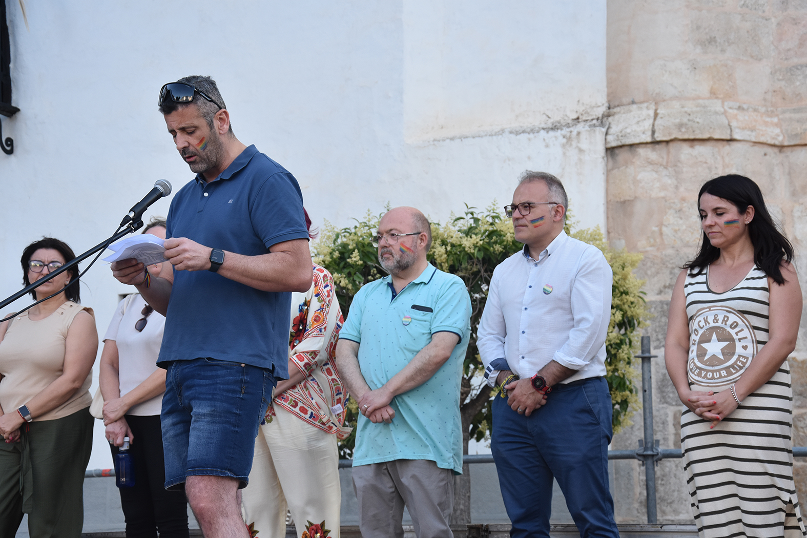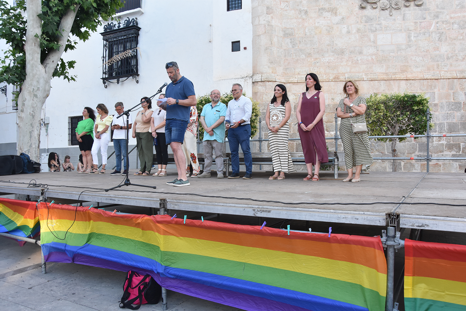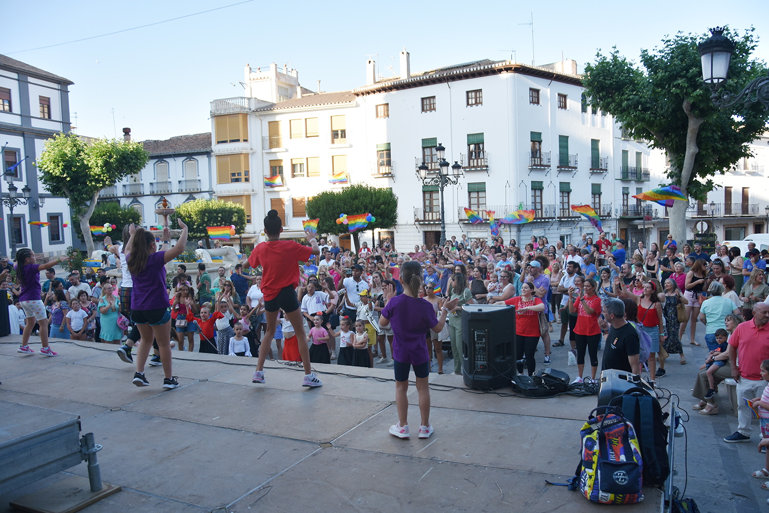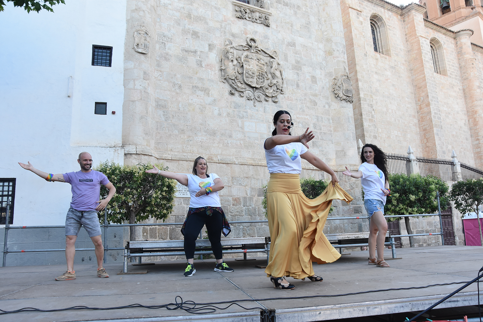 La reunión se inició con la lectura del manifiesto a cargo del concejal de Juventud, Juan Antonio Corral, que estuvo acompañado en el escenario por el alcalde, algunos miembros del equipo de gobierno y varios concejales de la corporación. A continuación, fueron subiendo a las tablas varios profesionales del baile de nuestra ciudad que se han implicado este año en la celebración del Baza Pride. Laura, Vero, Maribel y Edu nos ofrecieron una breve exhibición con los alumnos de sus distintos grupos para concluir con una flashmob conjunta en la que participó todo el público.