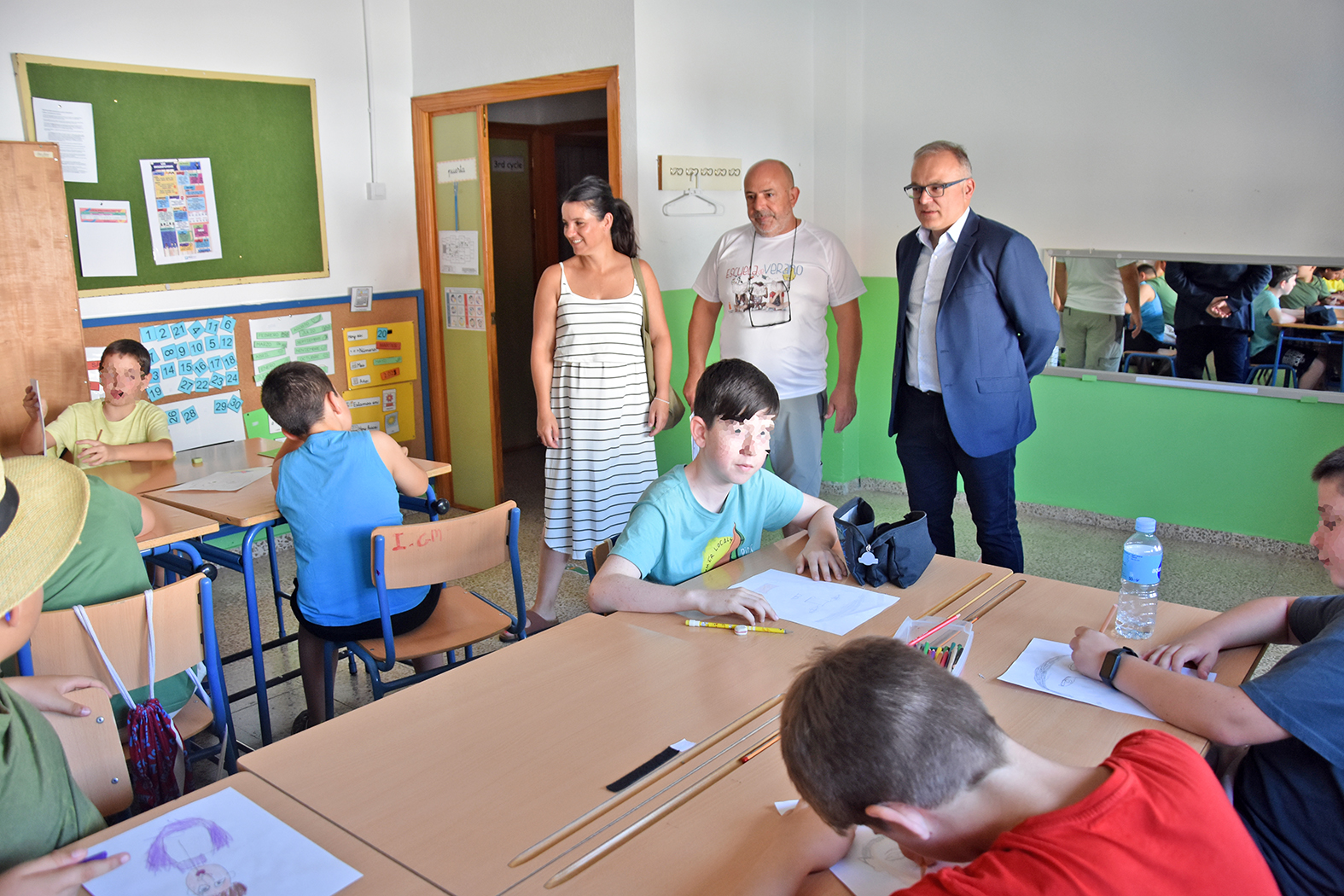 Para comprobar cómo han comenzado las clases en la Escuela Municipal de Verano de este año, la concejala de Bienestar Social, Priscila Martínez, y el alcalde de la ciudad, Pedro J. Ramos, han visitado las aulas acompañados por el director del servicio, José Vico.