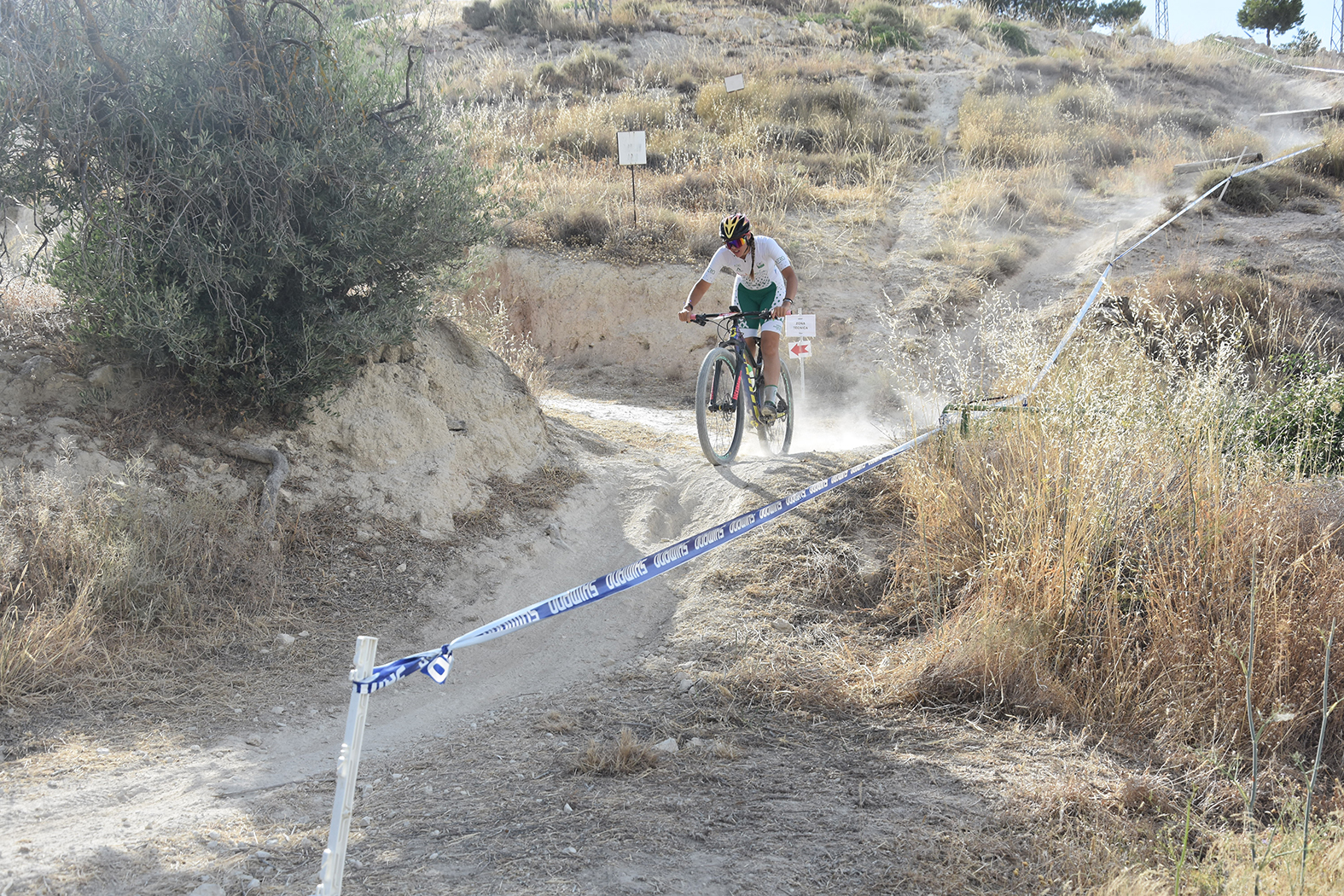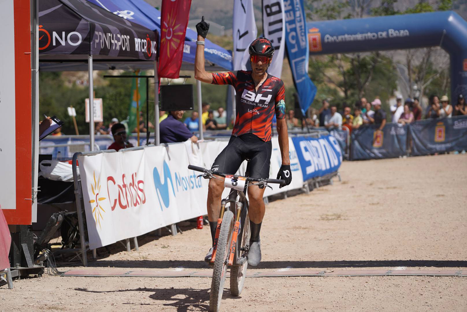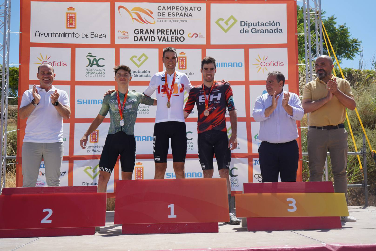 El circuito de bicicleta de montaña “David Valero” de Baza ha acogido, del 18 al 20 de julio, el Campeonato de España de BTT en las modalidades XCO, XCC y XCR. Remodelado en algunos de sus tramos para esta cita, este recinto ha sido el escenario ideal para la nueva gesta del deportista bastetano más importante de la historia, cuya trayectoria no deja de mejorar. Ante su gente, su familia, sus vecinos y sus paisanos, que no han dejado de animarlo y jalearlo durante toda la carrera, David Valero, del BH Coloma Team, se ha proclamado por décima vez Campeón de España de XCO en la categoría Élite, algo que nadie ha conseguido hasta el momento y que el ciclista olímpico de Baza ha acogido con la humildad y sencillez que lo caracteriza. La prueba, con la que se cerraba la programación de este campeonato, ha sido un paseo triunfal para Valero, que no ha dejado la primera posición en las siete vueltas al circuito que han tenido que sufrir los participantes. El alcalde de Baza, Pedro J. Ramos, ha sido el encargado de imponerle la medalla de oro en el podium, entre los aplausos y las emocionadas felicitaciones del público asistente. “Aunque era algo previsible, la victoria de David ha terminado siendo más que evidente, lo que no deja dudas de su posición en la BTT nacional. Estamos muy contentos por este nuevo éxito y le mandamos nuestra más sincera felicitación en nombre de toda la ciudad”, ha indicado Ramos tras la entrega de los premios.