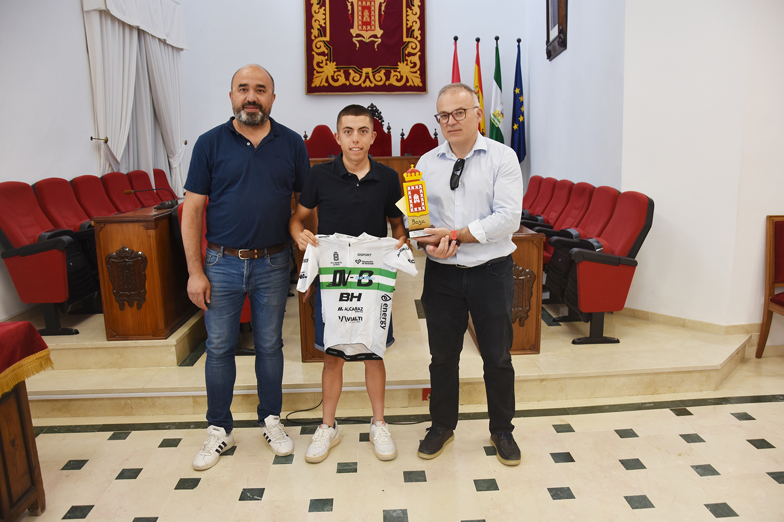 El concejal de Deportes, José Antonio Valdivieso, y el alcalde, Pedro J. Ramos, han sido los encargados de entregarles una réplica del escudo de la ciudad en cerámica en agradecimiento por su esfuerzo, por su tesón y por la promoción que hacen de Baza. Los curriculum que han acumulado son cuantiosos, aunque en este caso se ha empleado solo alguno de sus últimos éxitos…