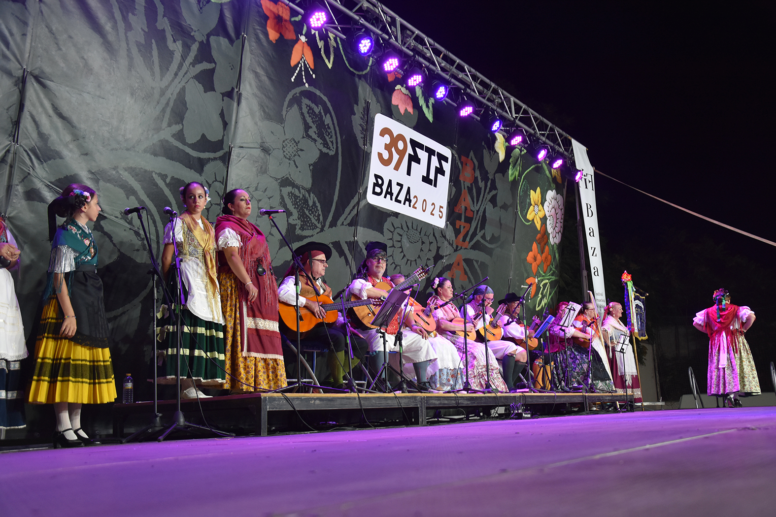 El campo de fútbol de la Alameda vivió los pasados 16 y 17 de agosto, sábado y domingo, la trigesimonovena edición del Festival Internacional de Folklore (FIF) de Baza, que ha demostrado una vez más encontrarse en plena forma. El primer día, tras la bienvenida del alcalde, Pedro J. Ramos, subieron al escenario el Grupo de la Asociación Folklórica “Virgen de las Cruces”, de Daimiel (Ciudad Real); el Grupo Festifolk Ecuador; y el Grupo Municipal de Coros y Danzas de Baza. La segunda gala contó con la Asociación Folklórica “Alcazaba”, de Almería; con el Conjunto Folclórico “Hajduk Stanko”, de Sabac (Serbia); y, de nuevo, con el grupo bastetano. Todos ellos ofrecieron un gran espectáculo que mantuvo atento al público, que no dejó de premiarles con sus aplausos.