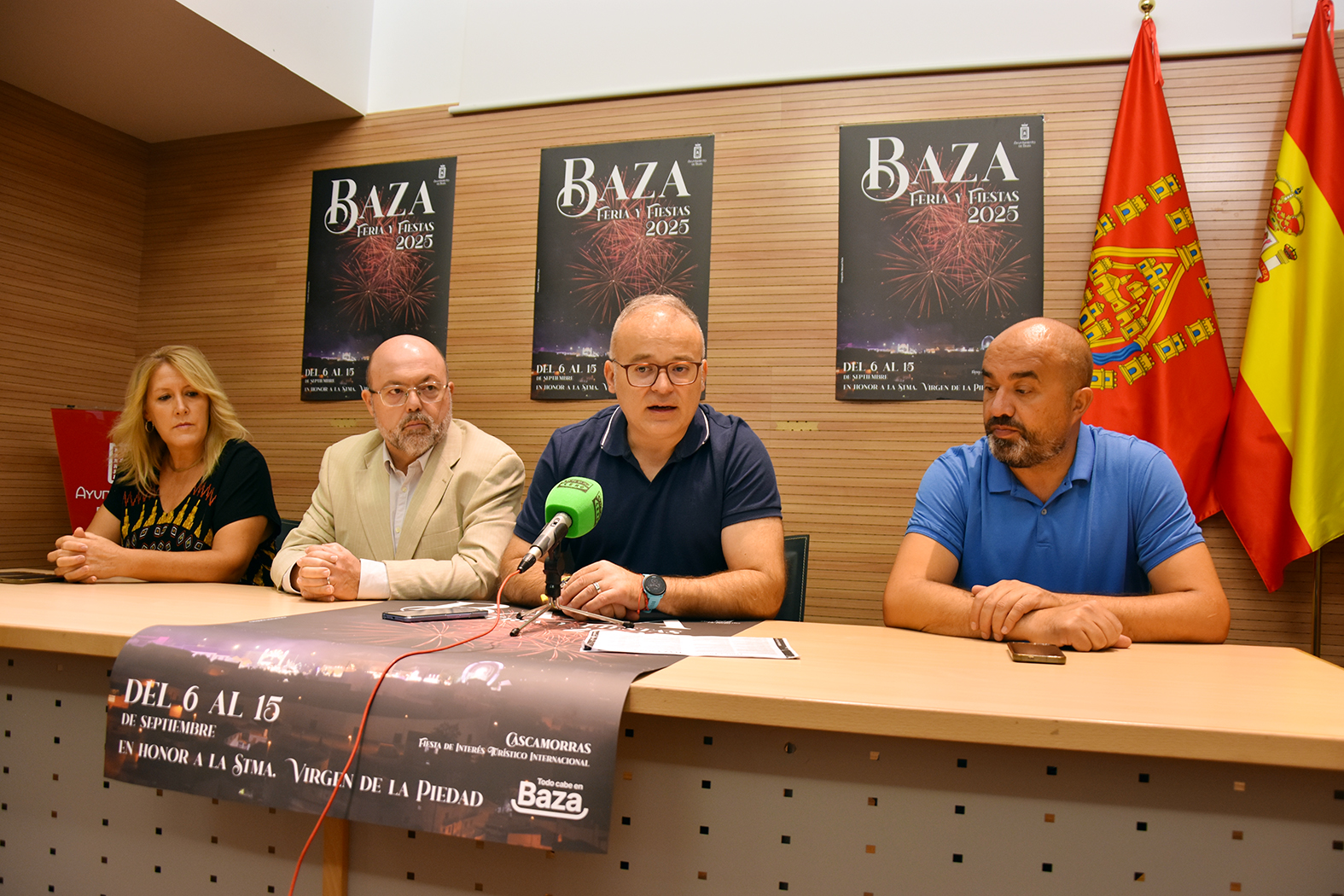 Con el alcalde de la ciudad al frente, el equipo de gobierno ha presentado, en la mañana de este viernes 29 de agosto, la Feria y Fiestas de Baza 2025. Pedro J. Ramos ha estado acompañado por los concejales de Cultura, José Gabriel López, por la concejala de Gobernación, Mª Carmen Sánchez, y por el concejal de Deportes, José Antonio Valdivieso. Durante su comparecencia han desgranado las principales novedades de esta edición festiva en honor a la Virgen de la Piedad, se han detenido en el dispositivo de seguridad y sanitario de cara a la carrera del Cascamorras y del ferial, han detallado las actividades deportivas y el concejal de Cultura y Fiestas ha paseado por el programa oficial describiendo gran parte de la oferta que se propone este año. Finalmente, el alcalde ha deseado Felices Fiestas a toda la ciudad, a los visitantes, y ha pedido responsabilidad y mesura en el disfrute ciudadano.