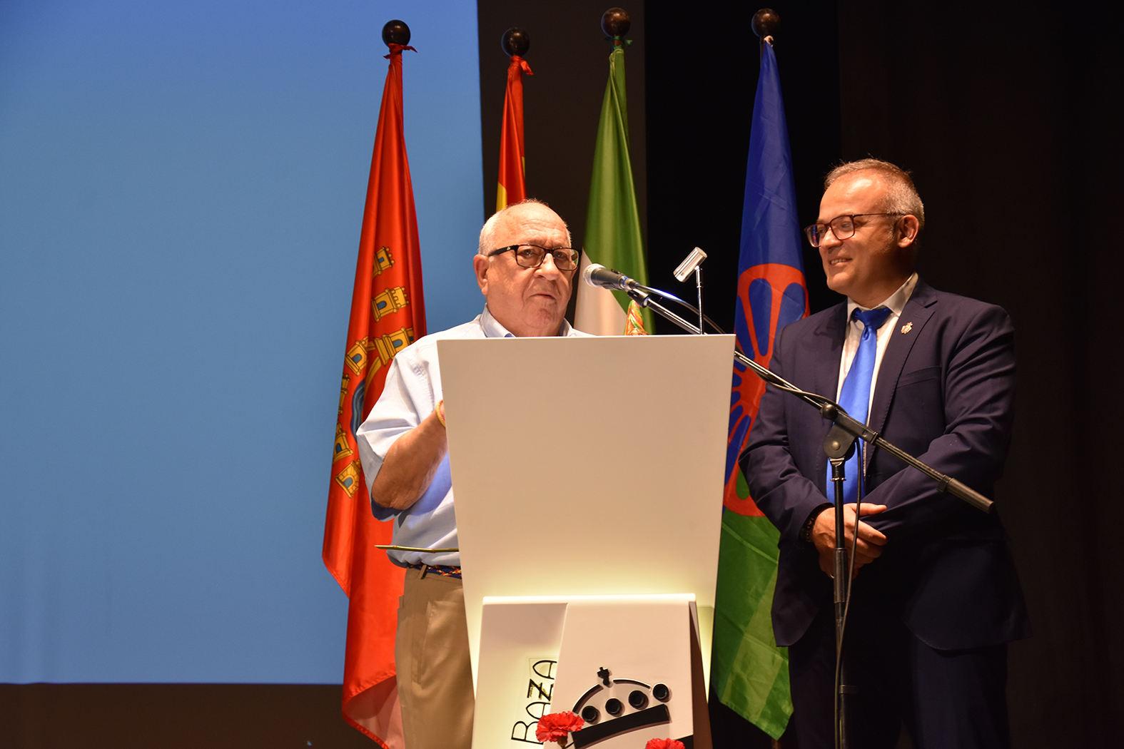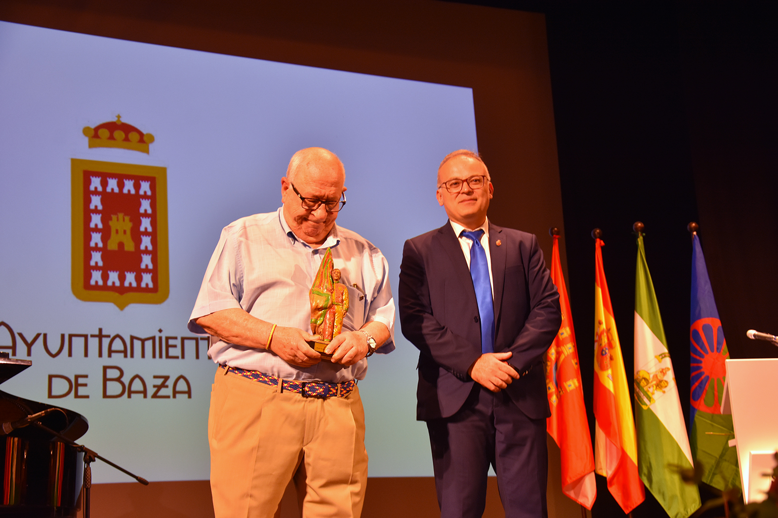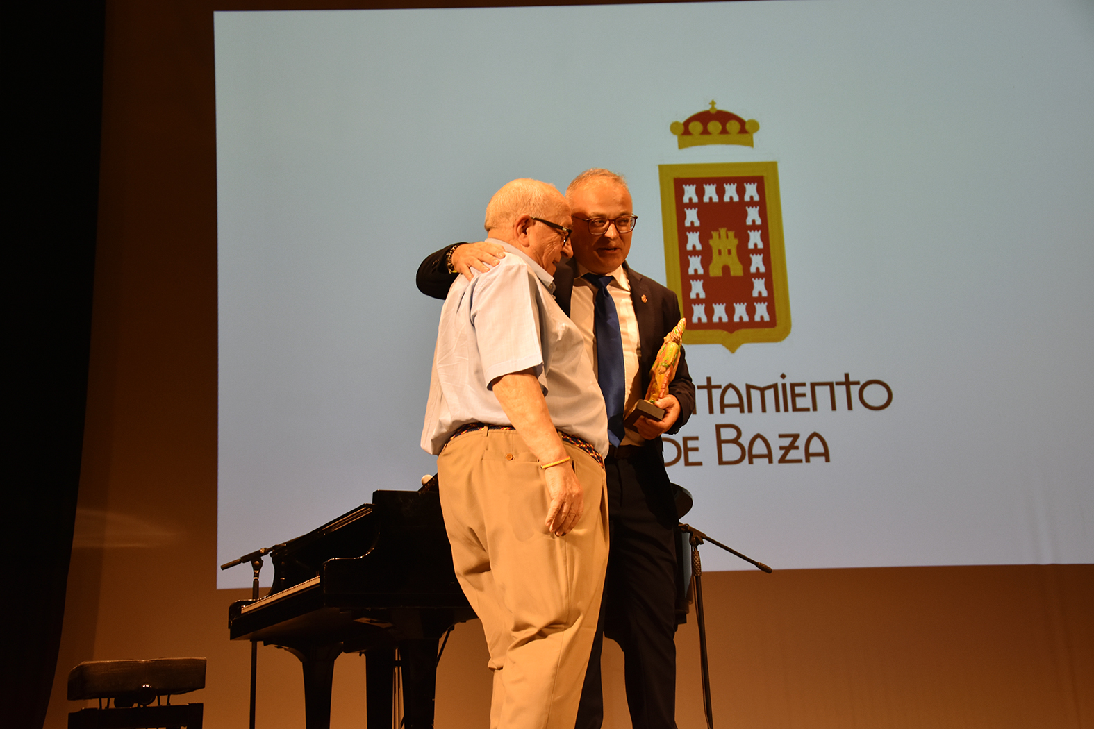 Por sorpresa, dentro del acto público celebrado el pasado 4 de septiembre en el que se entregó el Premio Cascamorras y se ofreció el Pregón de la Feria, el Ayuntamiento quiso agradecer y reconocer la labor del bastetano Miguel Fernández, que en los últimos cincuenta años ha sido el encargado de lanzar los cohetes que anuncian el inicio de la carrera de Cascamorras desde las Arrodeas. De manos del alcalde, Pedro J. Ramos, Fernández recibió una estatuilla del célebre personaje ante el aplauso generalizado del patio de butacas del Dengra. Emocionado por este reconocimiento, el protagonista agradeció el gesto municipal y prometió seguir en la labor mientras pueda. Miguel Fernández es una persona que desde hace décadas tiene un papel significativo en la preparación y celebración de la que hoy es Fiesta de Interés Turístico Internacional. De hecho, ha recibido ya varios galardones por parte de las entidades que preparan la llegada de Cascamorras cada año, especialmente en la vecina Guadix. Enhorabuena, Miguel, y a seguir en la tarea de anunciarnos con los tres cohetes cuando arranca la carrera.