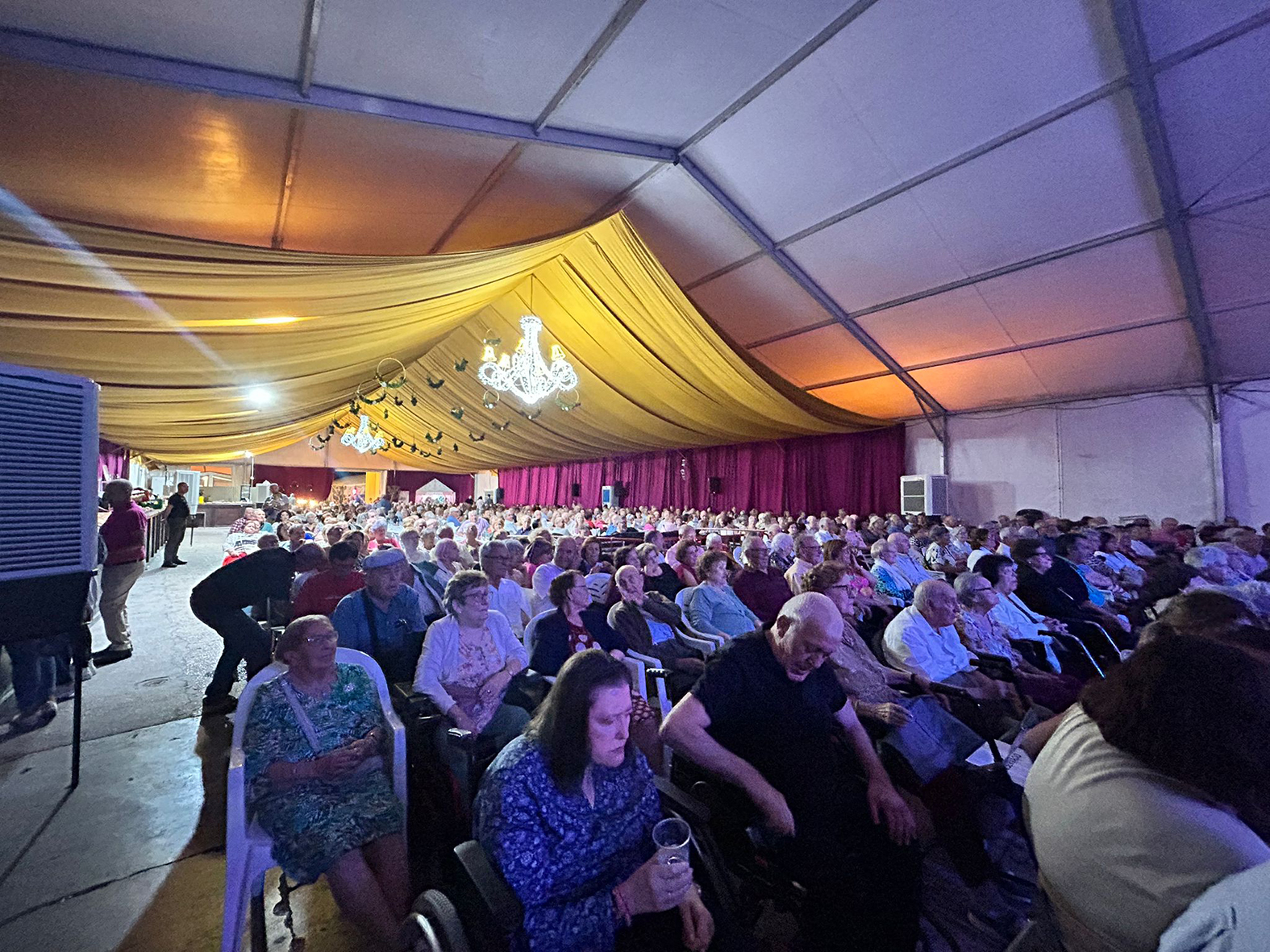 Con un lleno hasta la bandera en la Caseta Municipal transcurrió la velada que el Ayuntamiento de la ciudad dedica en la Feria a nuestros mayores. El 10 de septiembre, miércoles, se celebró este año el Día del Mayor y fueron decenas los vecinos que no quisieron perderse el espectáculo, que contó como gran protagonista con la cantante Nuria Fergó. Antes, el alcalde del Baza, Pedro J. Ramos, la concejala de Bienestar Social, Priscila Martínez, y el concejal de Cultura y Fiestas, José Gabriel López, se habían dirigido a los asistentes y habían entregado los premios de las distintas competiciones que se celebran con motivo de esta extraordinaria jornada en nuestras Fiestas. En petanca, el primer premio fue para Valentín Aránega y José Julián Jaén; y el segundo para Juan Molina y Pedro Ramos. En subastao, los ganadores fueron Juan Marín y Bernardo Marín y los segundos Daniel Martínez y Juan Vega. En brisca, el premio fue para la terna compuesta por Juan Vega, Prudencio Gallardo y José Navarro, mientras que los subcampeones fueron Antonio Pérez, Juan Marín y Bernardo Marín. Enhorabuena a todos.