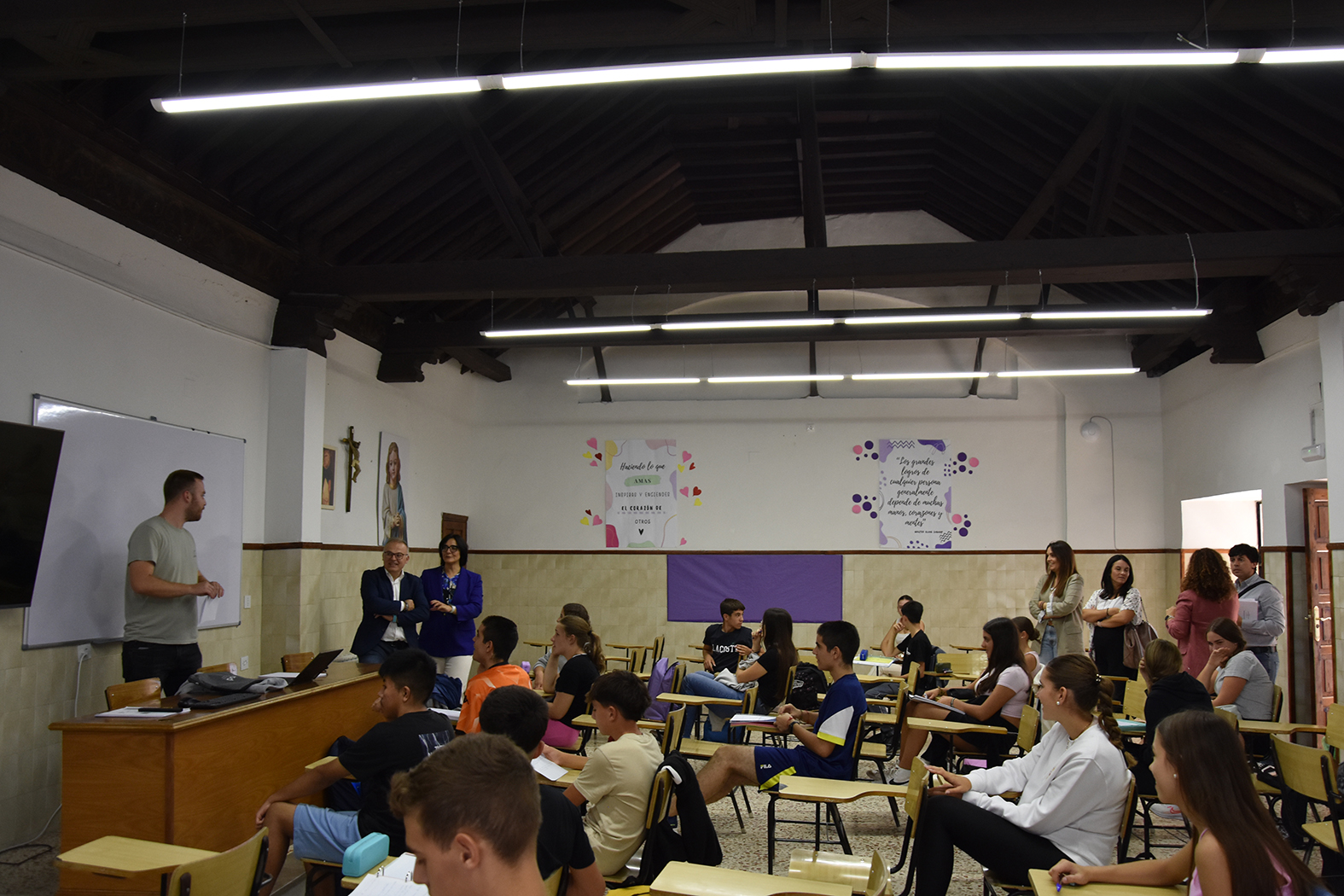 Durante la visita se han recorrido algunos de esos espacios que acaban de ser mejorados por el Ayuntamiento, en los que ya se impone la presencia de los grandes protagonistas, e incluso se ha comprobado el buen funcionamiento de algunos de los nuevos dispositivos digitales que ha aportado la delegación de Desarrollo Educativo.