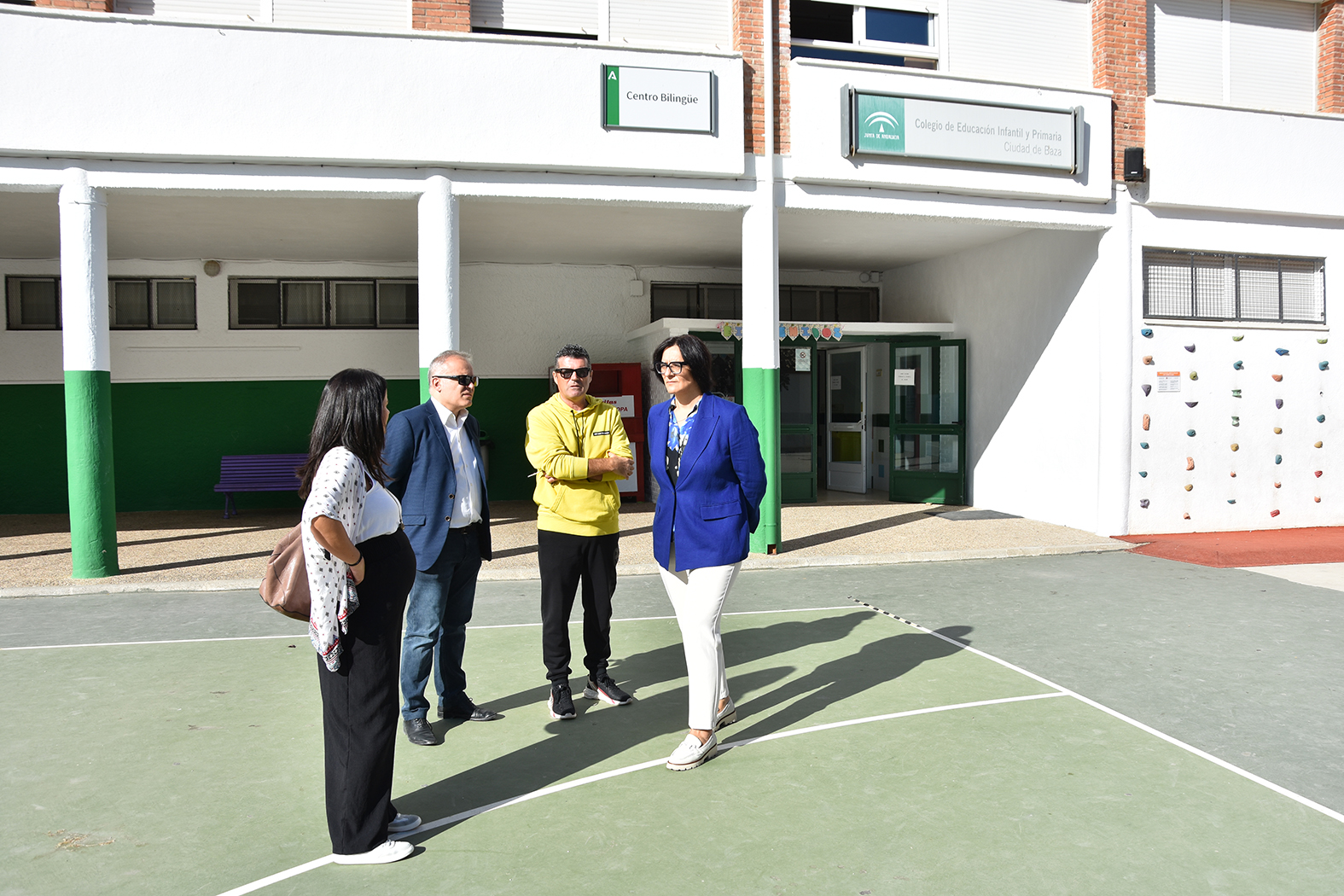 Acompañados por la delegada territorial de Desarrollo Educativo de la Junta de Andalucía en Granada, Mª José Martín, el alcalde de Baza, Pedro J. Ramos, y la concejala de Educación, Priscila Martínez, han realizado una visita a todos los centros de Primaria de nuestra ciudad, con el objetivo de comprobar en persona cómo ha transcurrido el inicio del nuevo curso escolar 2025-2026 en el municipio. De las conversaciones mantenidas con las directoras de estos centros la conclusión obtenida es que se ha vivido un comienzo de curso muy tranquilo, sin incidencias, y en el que los distintos CEIP han podido empezar a disfrutar de las numerosas mejoras que el Ayuntamiento ha realizado en sus instalaciones durante el verano. Labores de mantenimiento en patios, en aseos, en ventanas, en puertas, en los diferentes inmuebles que conforman los recintos escolares, en iluminación, en cubiertas, etc. etc. atendiendo siempre las necesidades expresadas por los responsables de cada comunidad escolar. Para conocer en detalle la gestión realizada por el Ayuntamiento durante el pasado verano en los centros escolares se puede visitar la información publicada en la web municipal el pasado 27 de agosto, a la que se puede acceder con este enlace https://ayuntamientodebaza.es/2025/08/27/25346/