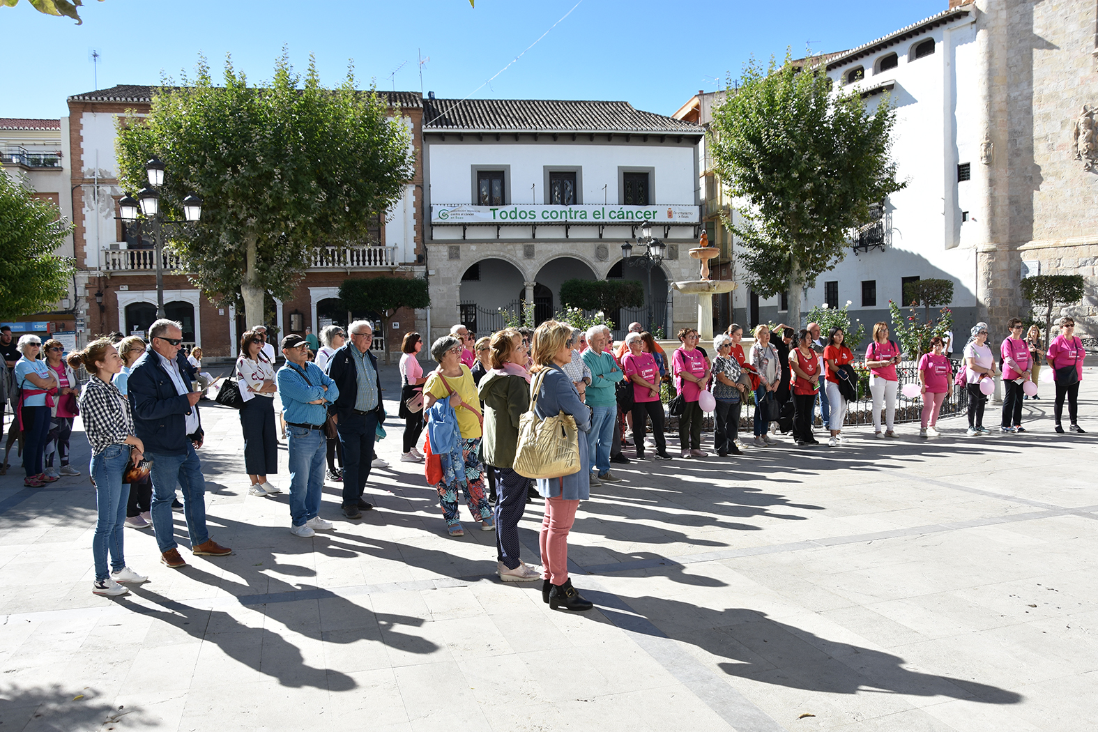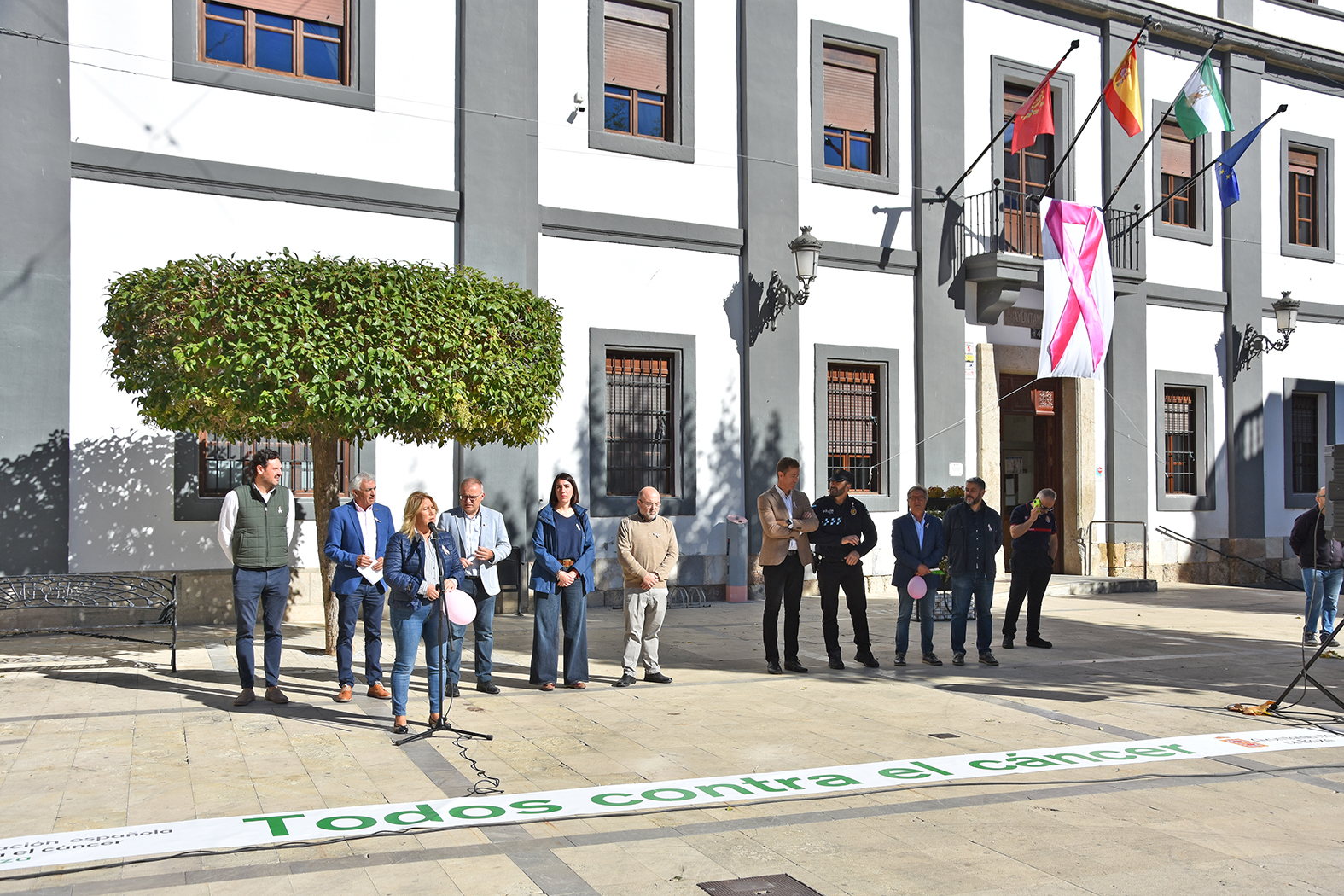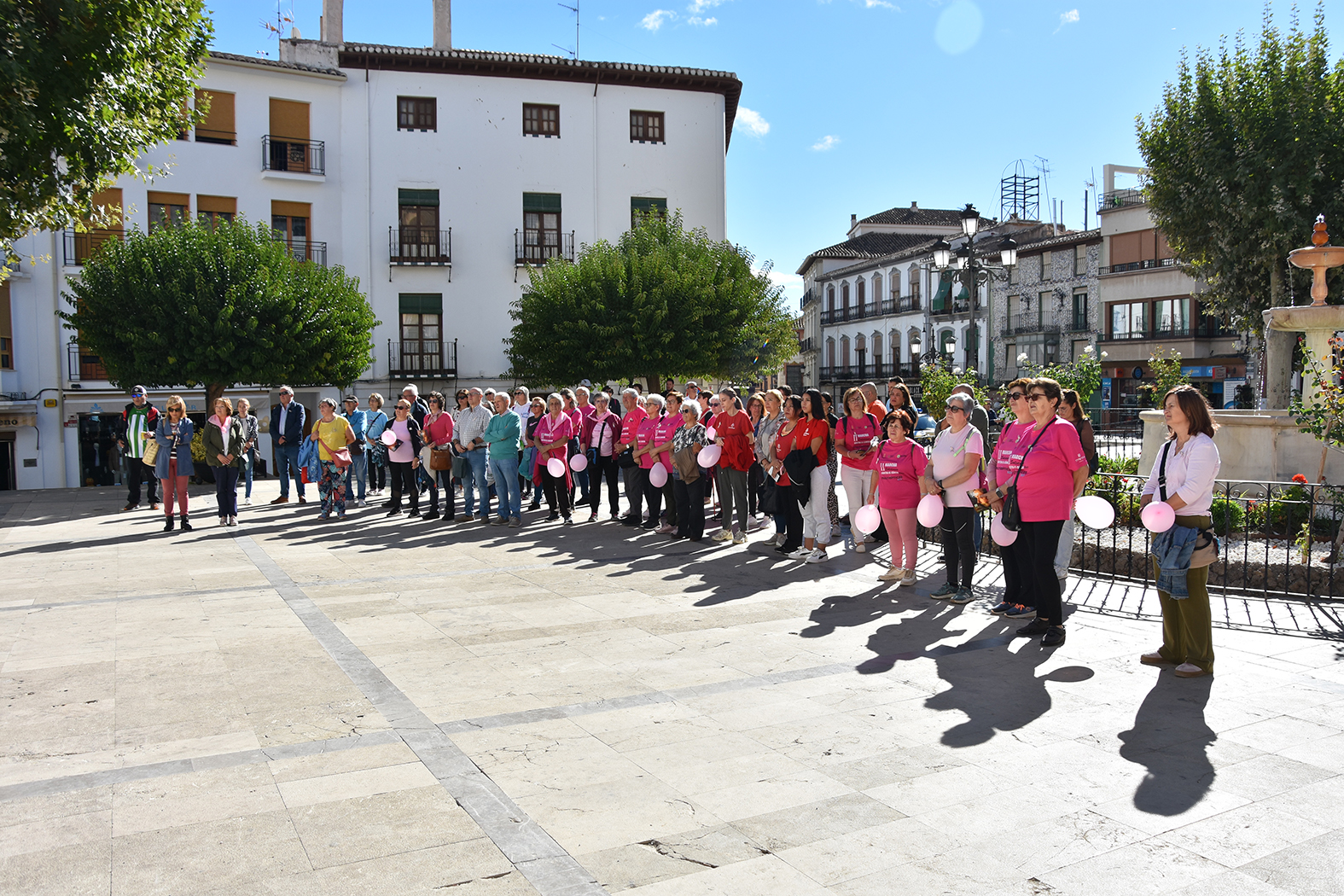 La ciudad de Baza ha vuelto a manifestar su respaldo a la lucha contra el cáncer de mama. Dos jornadas después del Día Mundial Contra el Cáncer de Mama, establecido el 19 de octubre, la Plaza Mayor bastetana ha acogido el acto institucional con motivo de esta reivindicación. Organizado por la Junta Local de la Asociación Española Contra el Cáncer, la convocatoria ha contado con la presencia del alcalde de Baza, Pedro J. Ramos, de varios miembros de la corporación municipal, fuerzas de seguridad, diversas entidades sociales del municipio y varias decenas de personas, la mayoría de las cuales habían participado esa misma mañana en la Ruta Saludable previa a esta celebración.